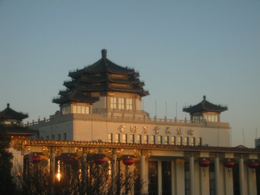 (有名な天安門?膳飯店。看板は溥儀の弟、溥傑が書いた。)