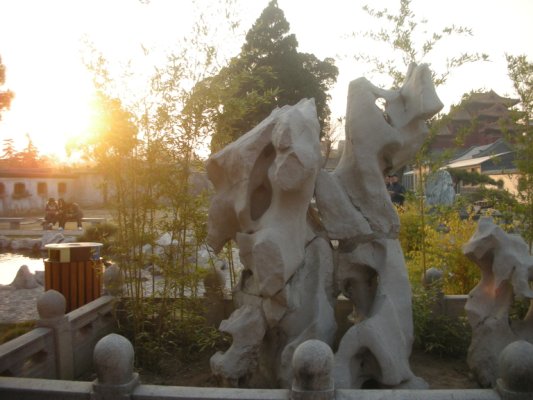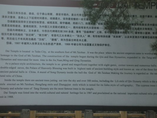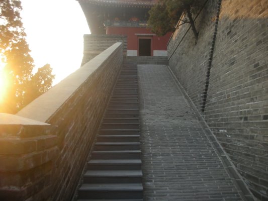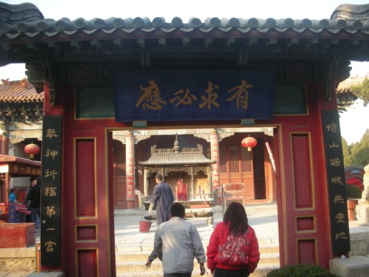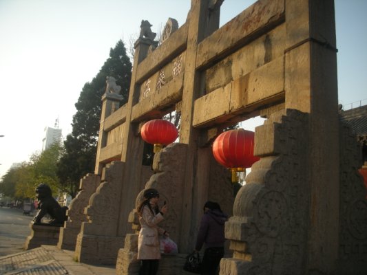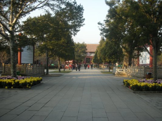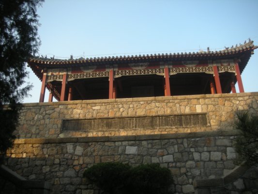 歴代の皇帝が泰山封禅の祭儀を行った場所ですが、泰山に比べて、観光客があまりおらず、ひっそりとしています。しかし、ひとつひとつじっくり見ることができたので良かったです。はるかに泰山が望め、これからあれに登るのかと思うと、ワクワクしてきました。