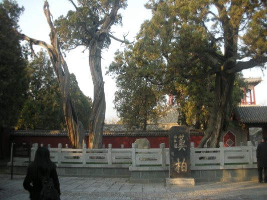 (宣和重修泰岳廟記碑の奥には漢柏という5株の柏の木がある。これらの柏の木はすべて漢の武帝が封禅の儀式を行ったときに植えられたものと伝えられており、樹齢は2000年以上となる。)