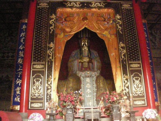(中国三大宮殿建設の天キョウ殿。北京の紫禁城と曲阜の孔廟並んで並んで有名。高さ22.3m、幅48.7m、奥行き19.8m。古代の「皇帝」たちが「泰山の神」を祀った場所で、1009年の創建。)