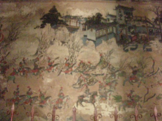 (天キョウ殿の内部には、巨大な壁画が描かれ、当時の封禅の様子を後世に伝えている。)
