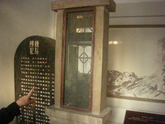 (かつては泰山頂上にあった鉄塔説明文。日中戦争で日本軍が壊したために麓に下ろした。)
