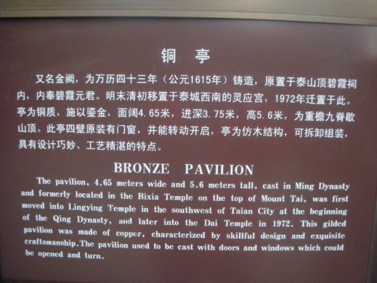 (銅亭。下は泰山の頂上にあり、休憩室として使われたが、戦争のためこちらに移した。)