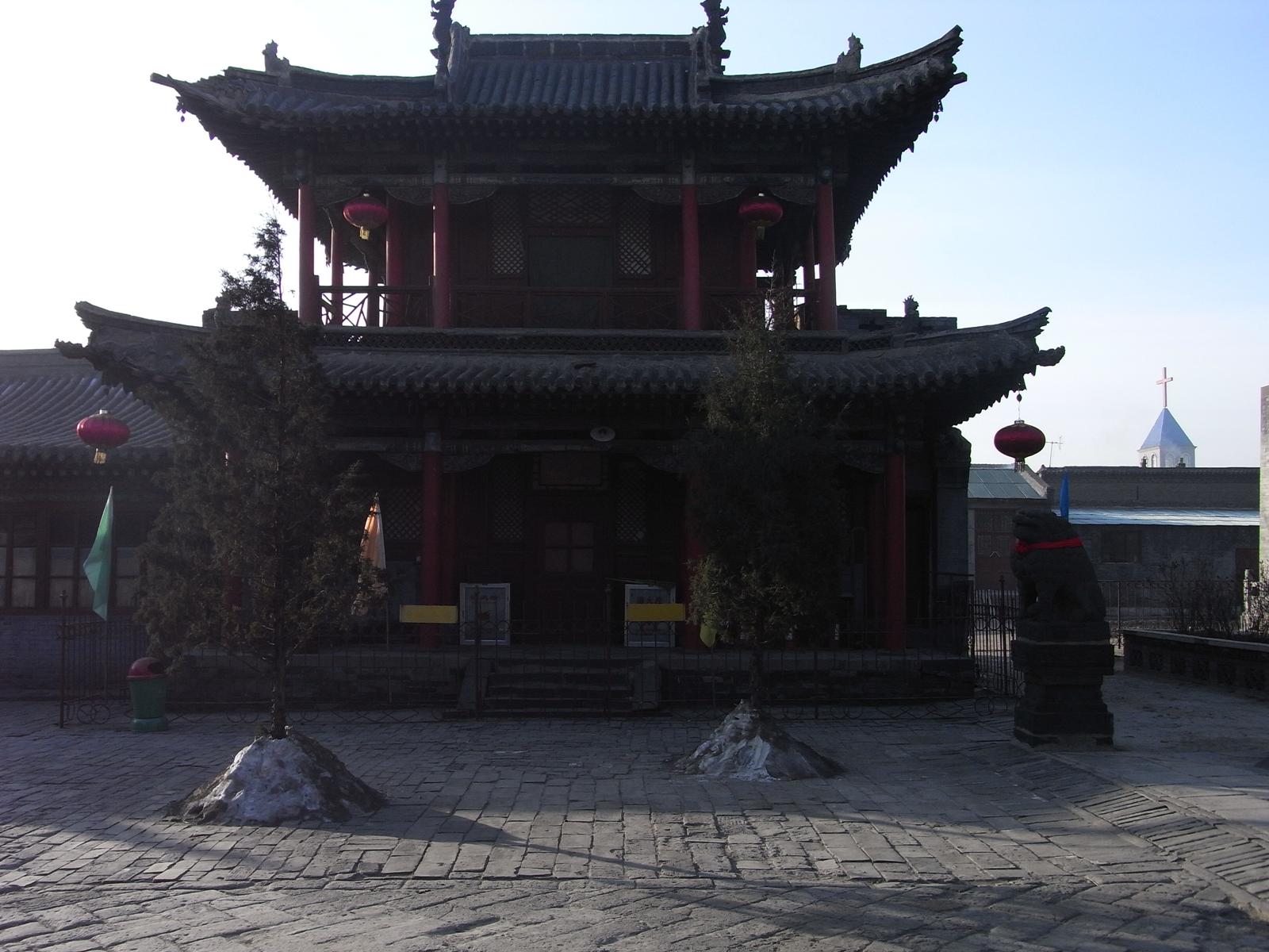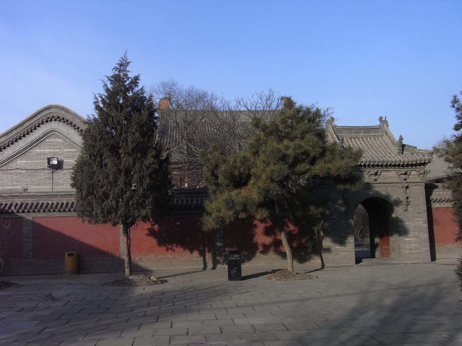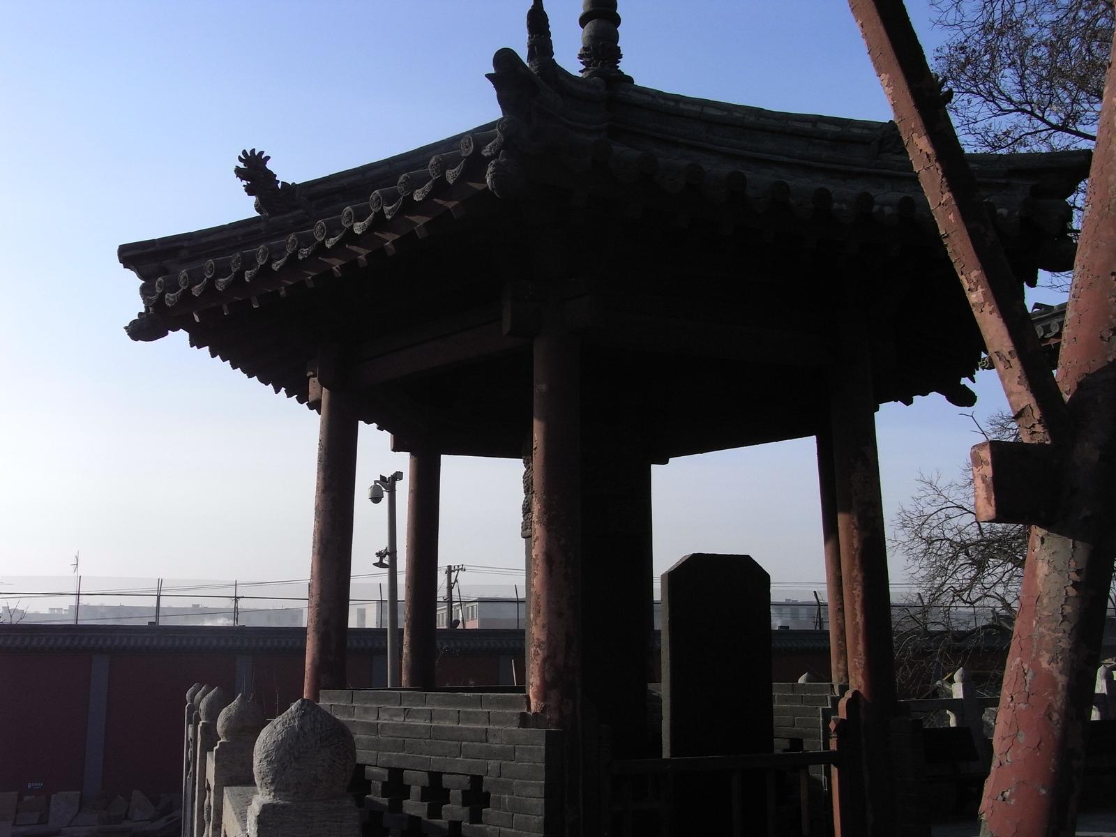 遼代1062年建立、金代1140年再建の大雄宝殿。斜斗拱に金代の特徴が出ている。いわゆる減柱法により前方空間を広く取っている。4.5mの鴟尾は金代のもの。月台は、高さ4m凸型形状で、遼金代の典型。仏像は明代のもの。木組は、材が太く豪快、壁面は清代の壁画で埋め尽くされている。