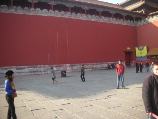(紫禁城午門の右側。午門はかつての刑場としても使用され、鞭打ちの刑が行われていました。映画「ラスト・エンペラー」では宦官(去勢した男の役人)たちの横領を疑った皇帝の溥儀が、改革のために財の管理を調査する!と宣言した途端に宝物殿に火を付けられ、隠蔽工作に怒った溥儀は宦官全員を城から追放する!という場面で、男根を持って紫禁城から追い出される宦官たちを、皇后らと一緒に眺めていたシーンを撮影したロケ地です。)