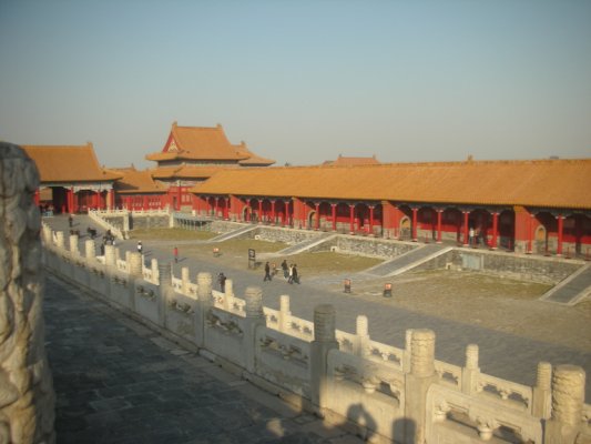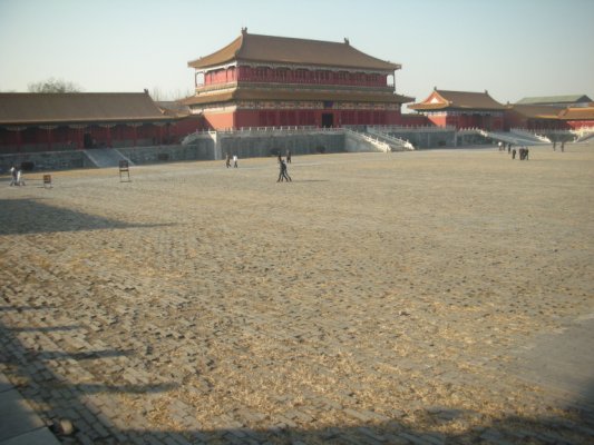 南門を抜け、大和門を抜けるとそこには広大すぎる広場があります。この広場に無数の役人が集まり、太和殿にいる皇帝からの命令を受けていました。 この広場は、ラスト・エンペラーで溥儀が即位する儀式のシーンで、無数の官吏がずらりと並んでいた場所ですね。