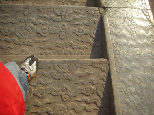 (大和殿前の石畳。東半分は、明時代に作られたものがそのまま残っているそうですが、敵が穴を掘って侵入してくることを恐れて、5m下まで石が敷き詰められているそうです。)