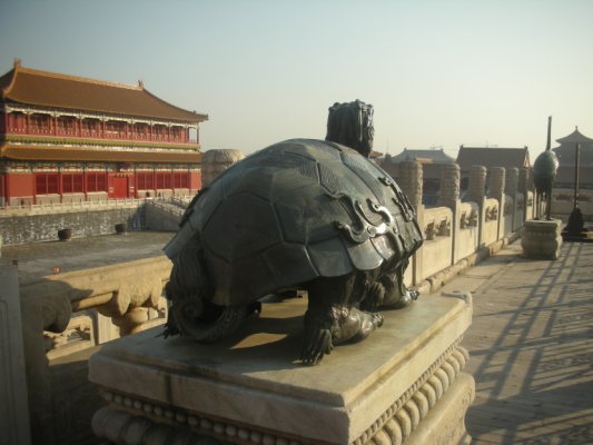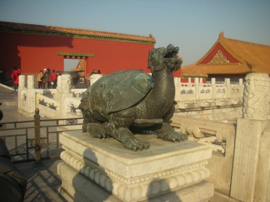 (大和殿の防火用水。青銅の上に金が塗られていたが、諸外国によって剥がされました。)