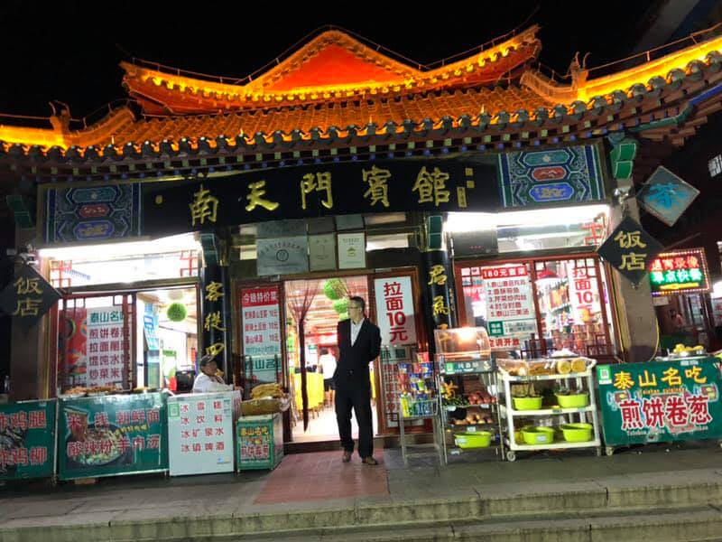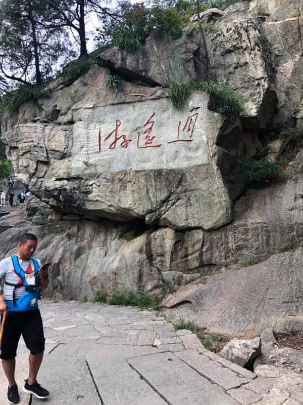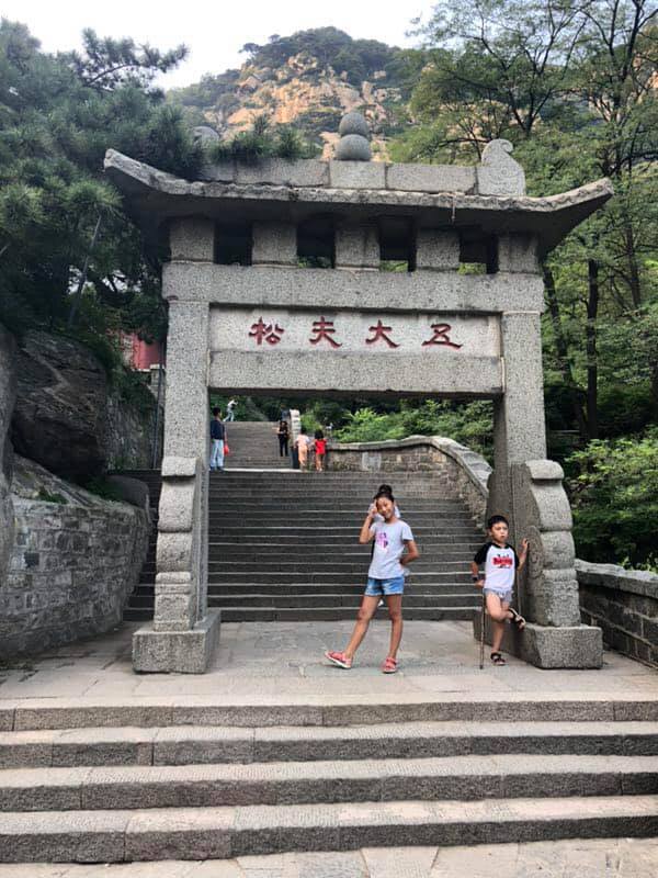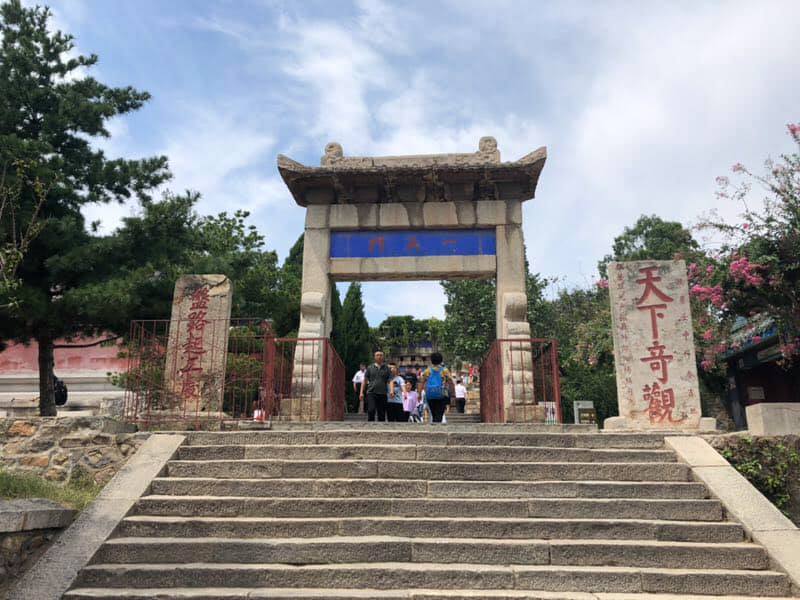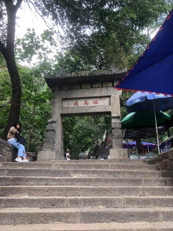(神聖な門から入ります。由緒ある泰山登山。昔から皇帝を始め大勢の人々が登った歴史ある正面道を歩いて登ります。)