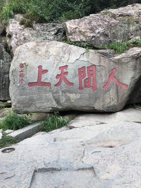 (一天門。ここが昔からの泰山の入り口。天下の奇観の文字が目に入ります。)
