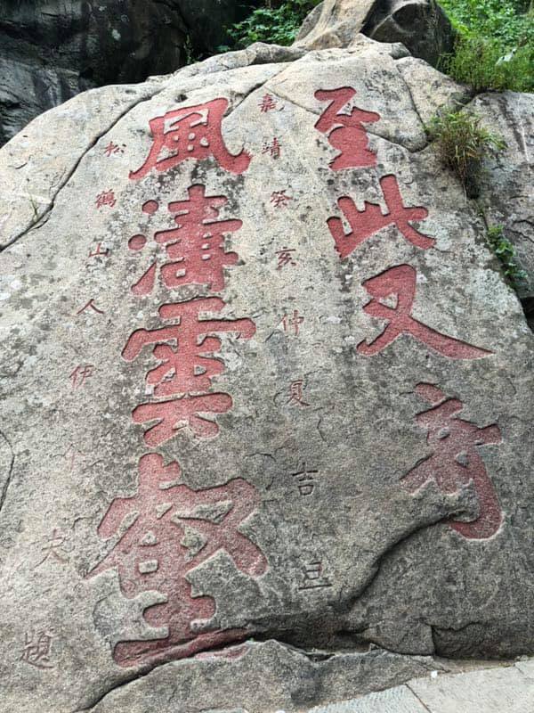 (紀泰山銘。唐摩崖碑とも呼ばれ、高さ13.3m、幅5.7mあり、刻まれている序文や銘文は全部で1008文字ある。唐の玄宗皇帝が泰山で封禅したときのことが記された碑である。)