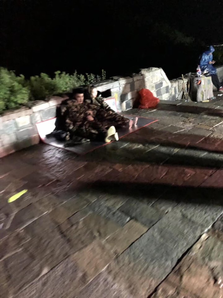 (山上でテントを張って野宿しましたが、あいにくの雨です。)