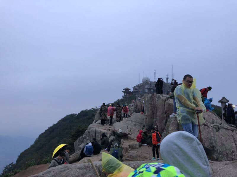 (あいにくの曇りでご来光は見えず!!残念!日観峰。気象台みたいな建物があり、ホテルにもなっているようだ。)