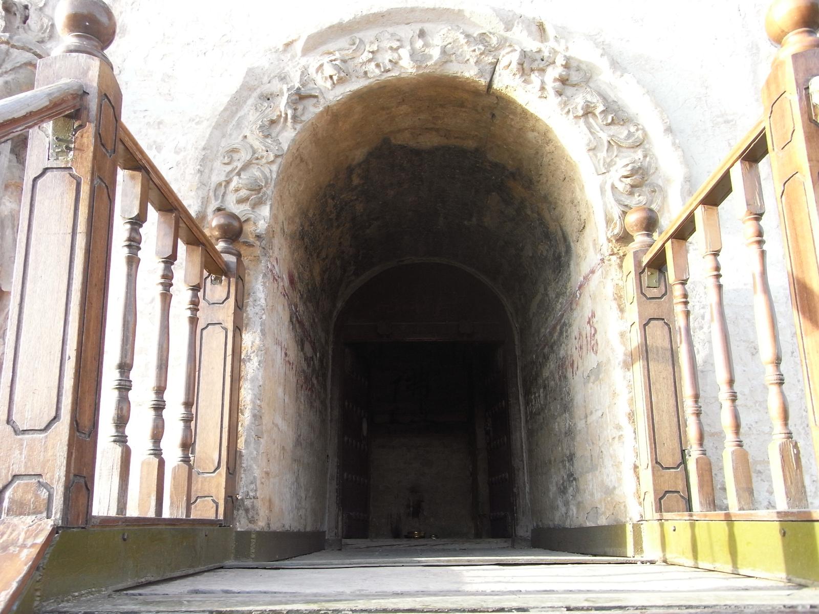 (万部華厳経塔に登ってみます。階段を登ります。)
