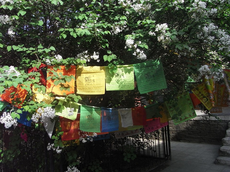 。清朝乾隆年間に建てられたもの。この形のパゴダとしては、現在内モンゴルに現存する最大のもの。チベットの五色の祈祷旗『タルチョ』は青・白・赤・緑・黄の五色は、それぞれが天・風・火・水・地を表している。.jpg)