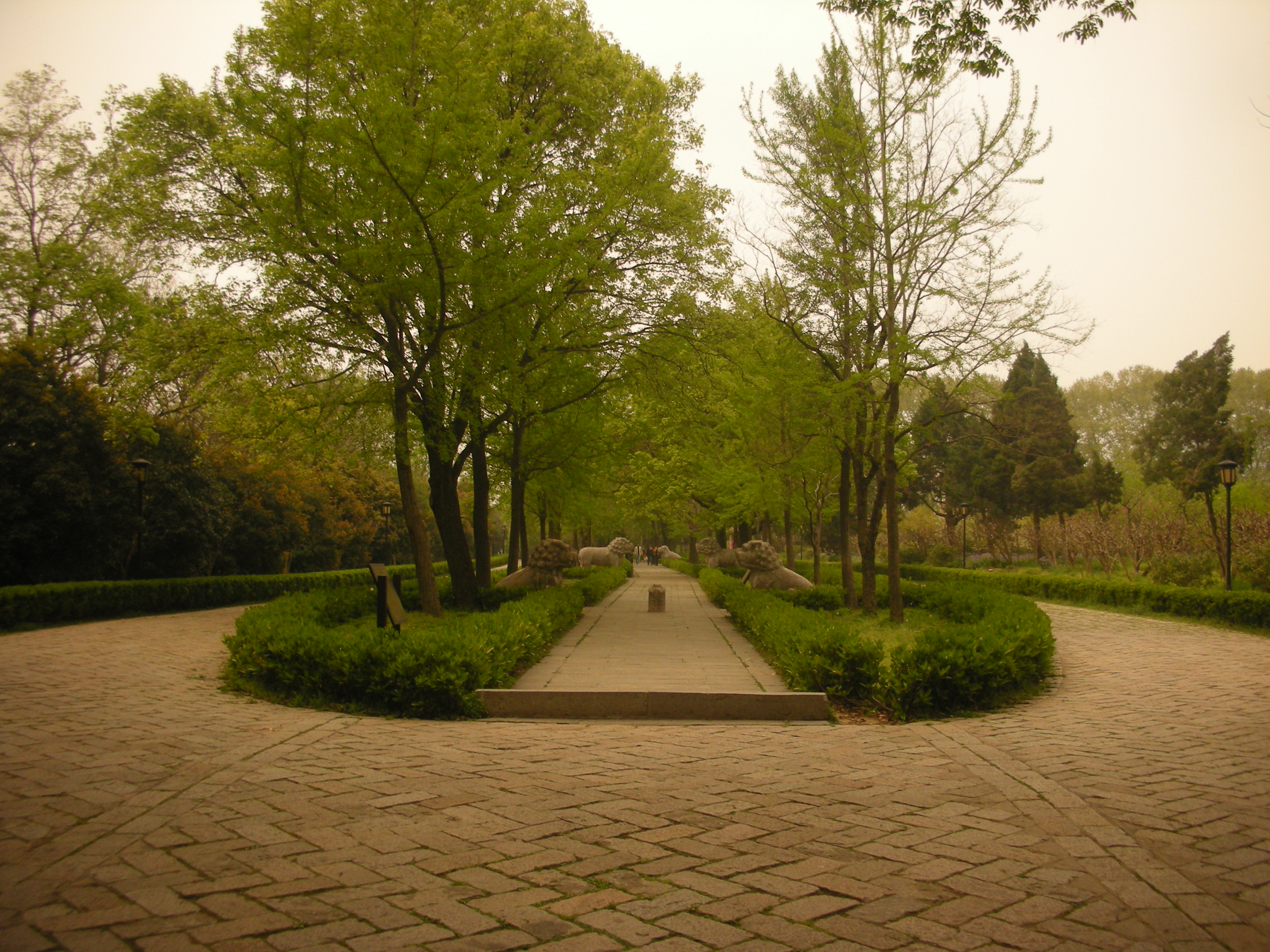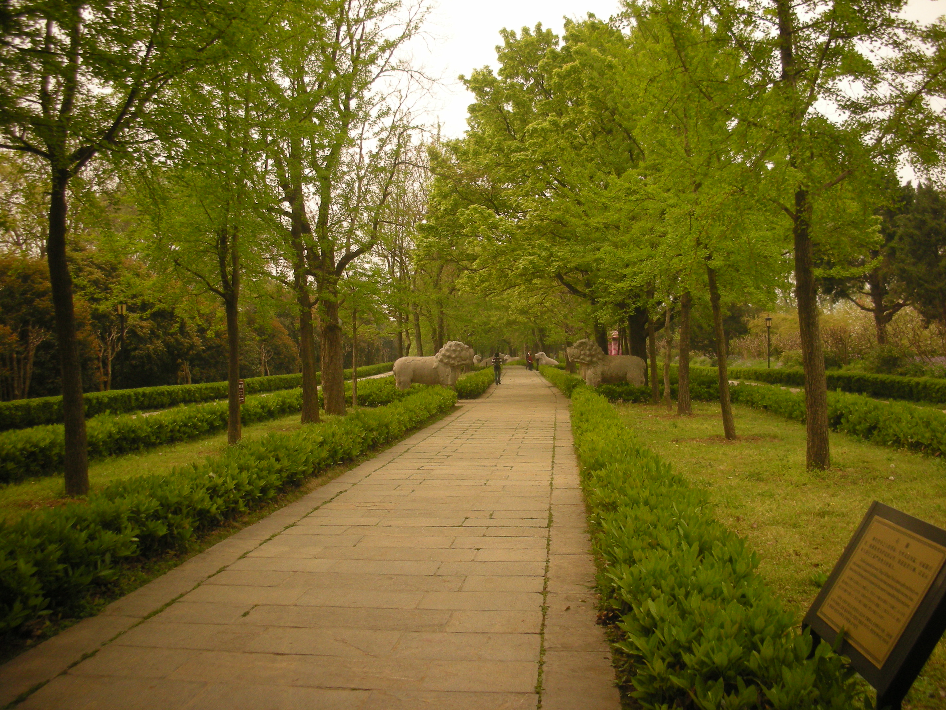 この南京には建設に25年余りの歳月を費やし、1405年に完成した朱元璋の陵墓があります。陵墓に続く神道には動物の石像が並び、文官や武官の石像が並ぶ道を進むと文武方門、碑殿、内紅門、方城と続いています。