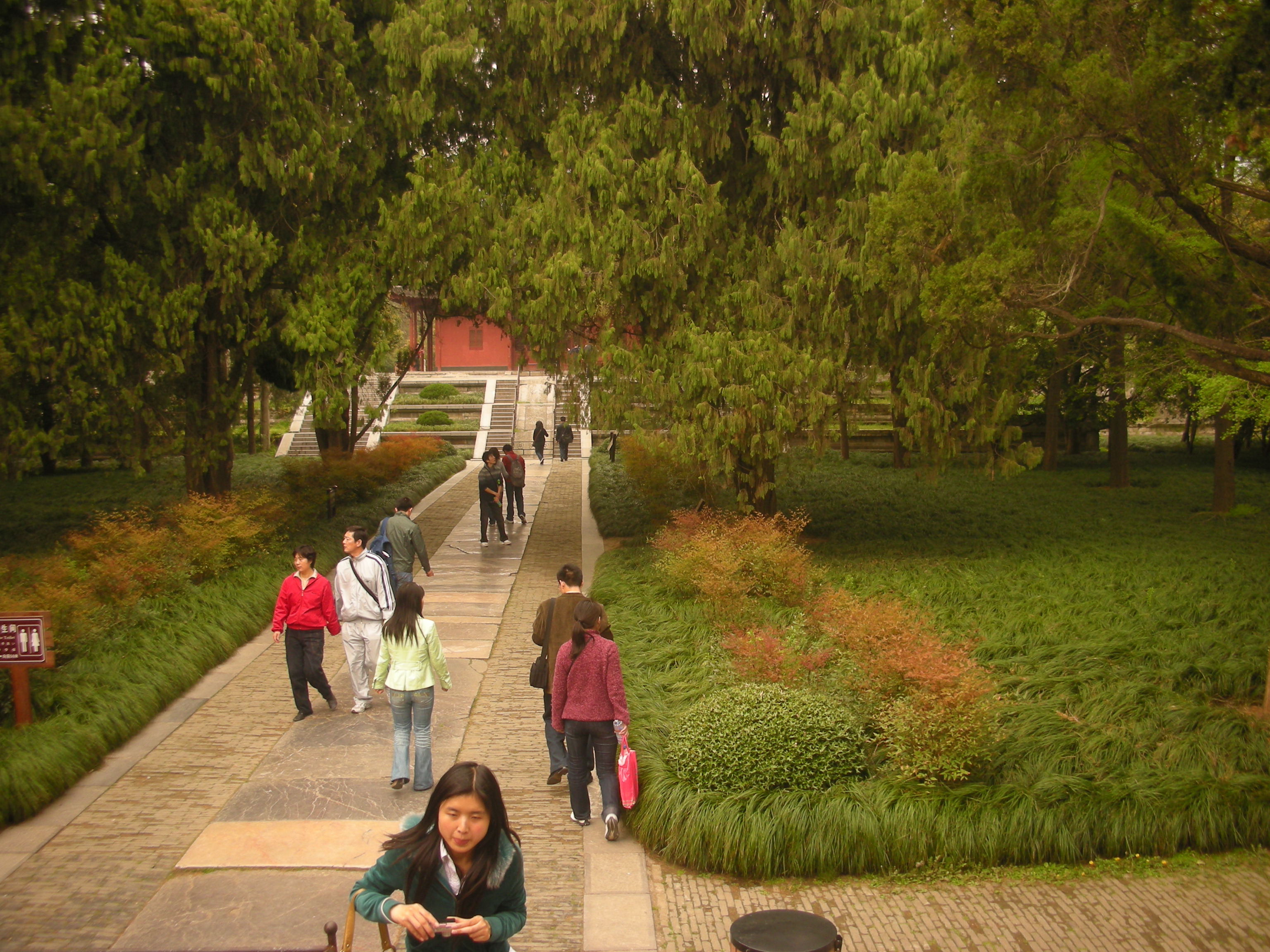 (中山陵から歩いて1kmほどで明孝陵に着く。明孝陵は、明の初代皇帝である朱元璋(洪武帝)の陵墓である。)