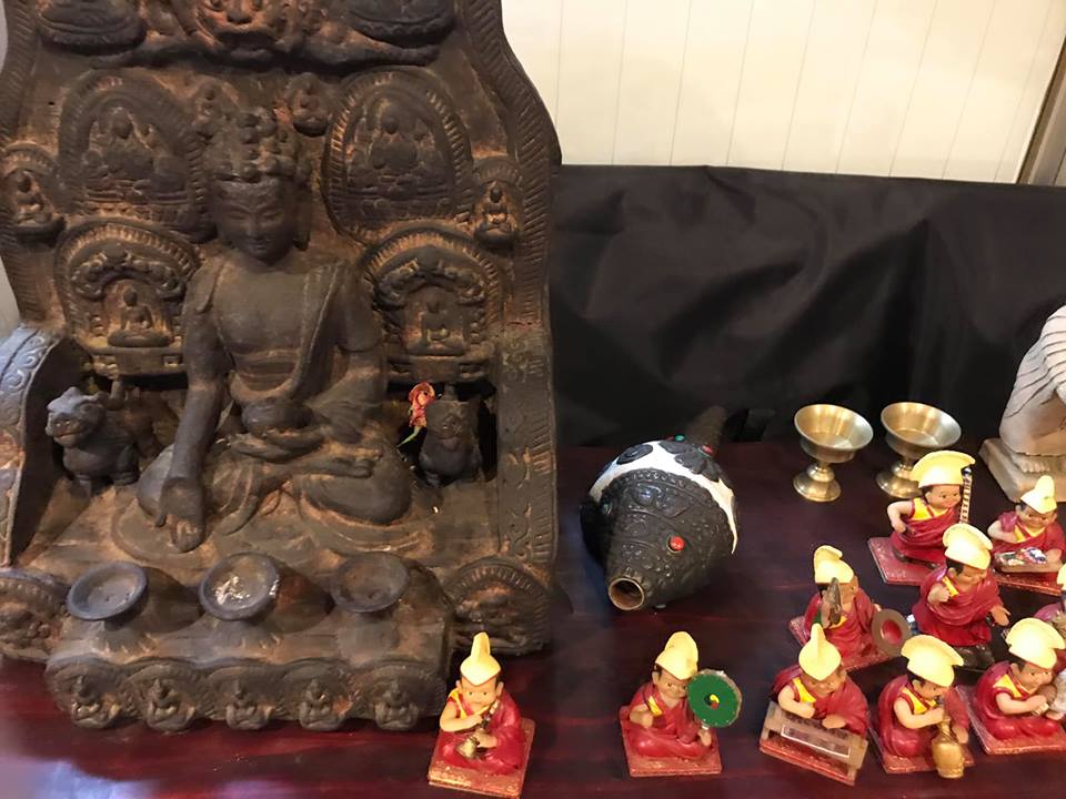 (チベット仏教の仏像と僧侶のディフォルメ人形。)