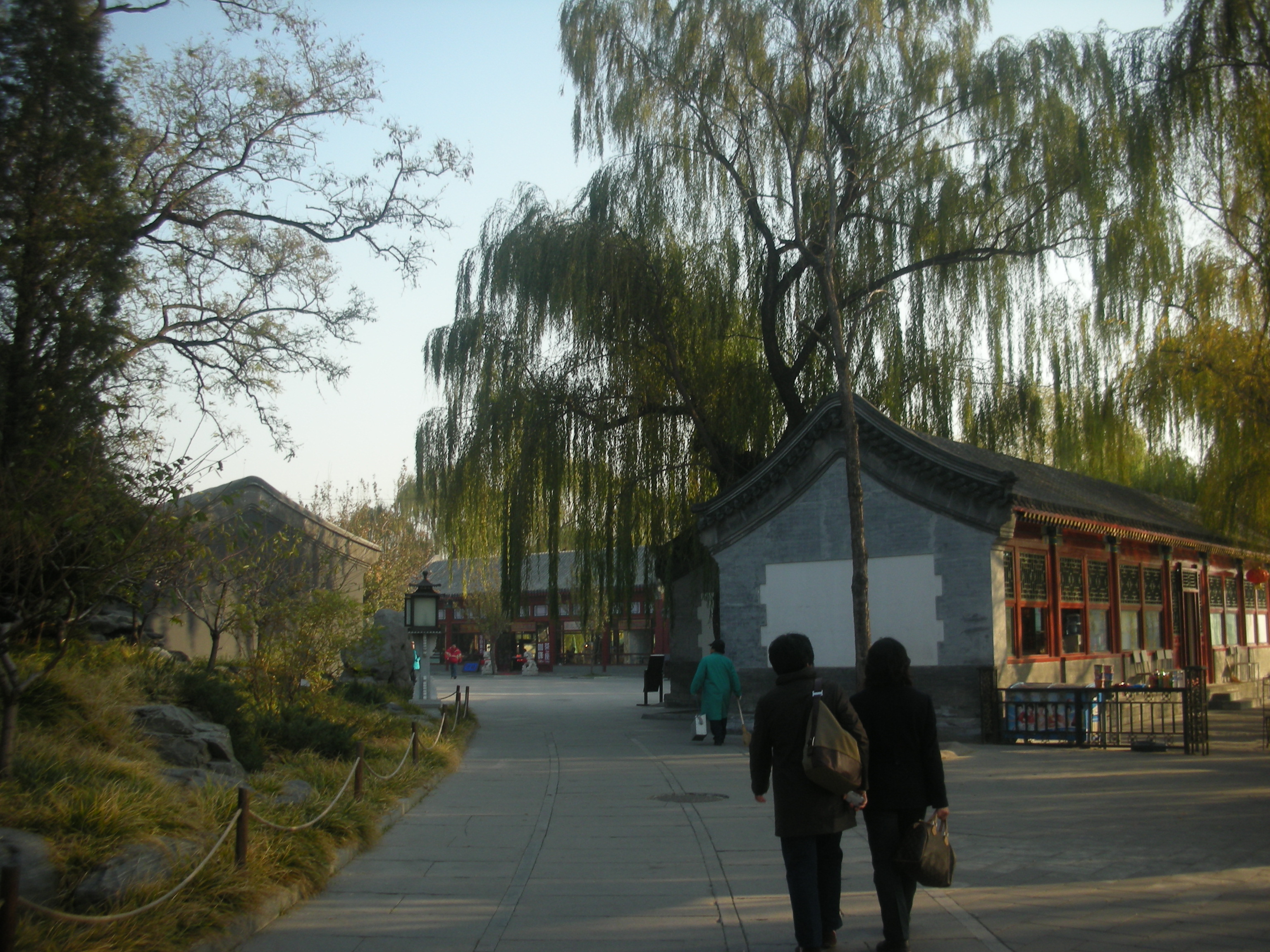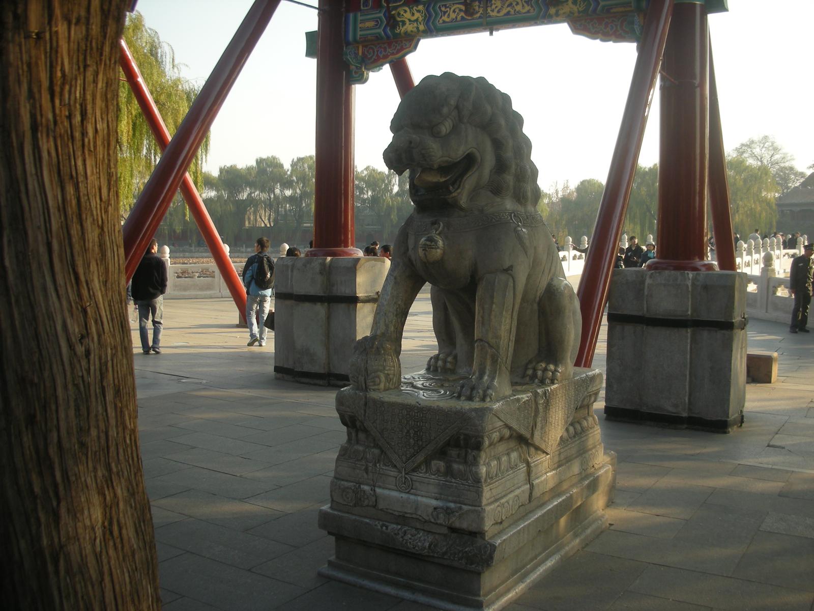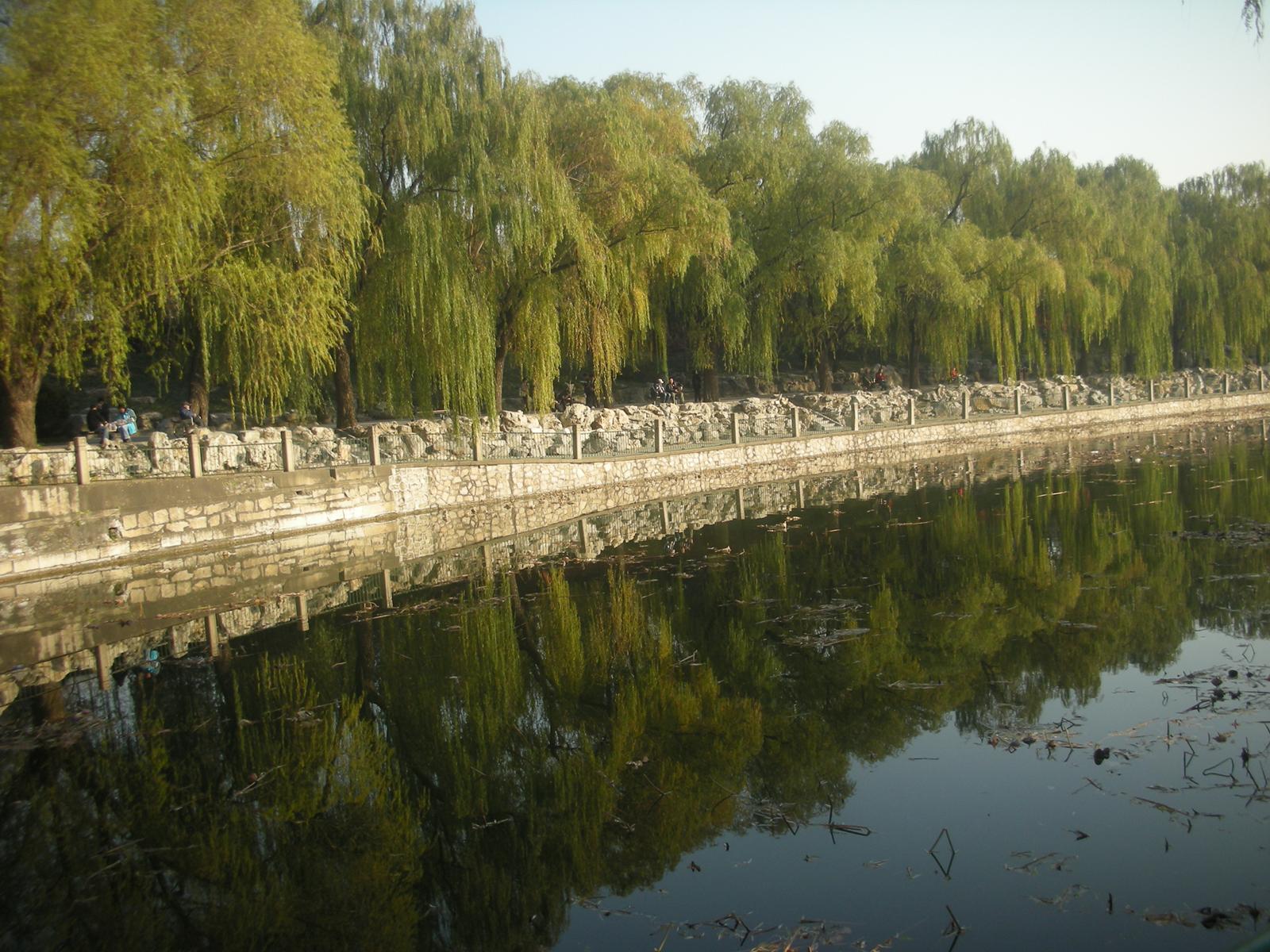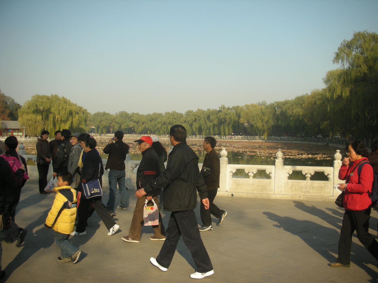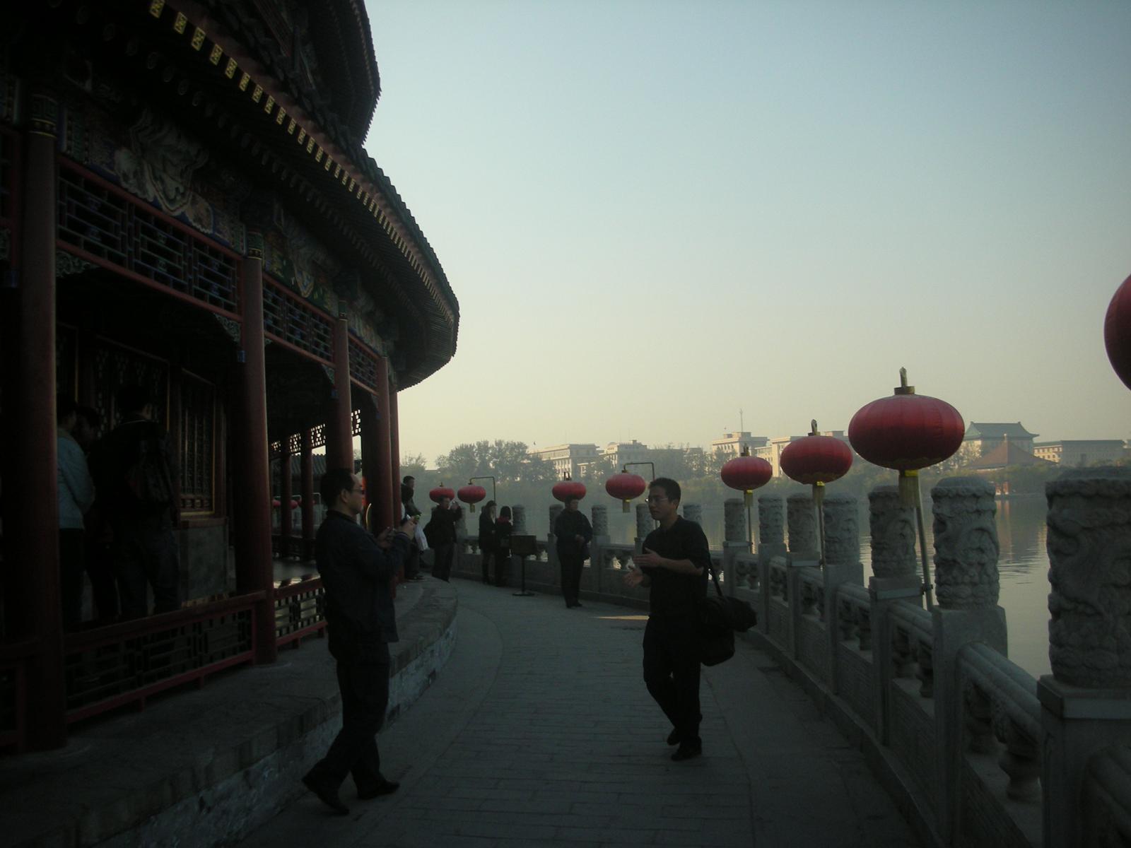 北海公園は現在開放され、地元の中国人の憩いの場所となっており、釣りを楽しむおじいさんやピクニックをする家族連れがいるかと思えば、新体操のリボンのような技を見せる人や、太極拳をしたり、歌を歌ったり、地面へ水を筆につけて書道をする人もいたり、ダンスを披露したりする人の姿も見られます。更に冬にはスケートリンクが開放されます。北京市民の憩いの場所となっており、生活の一部となっているのです。