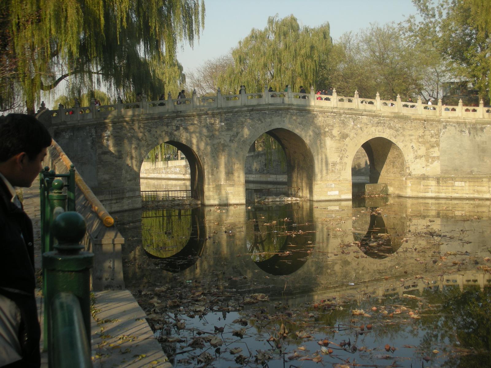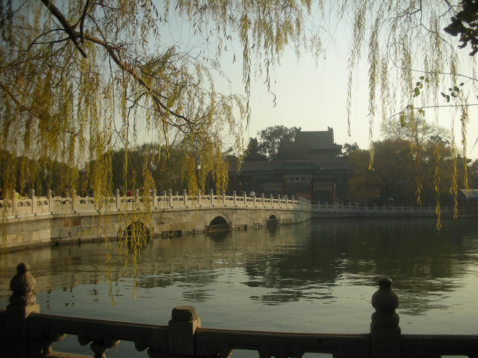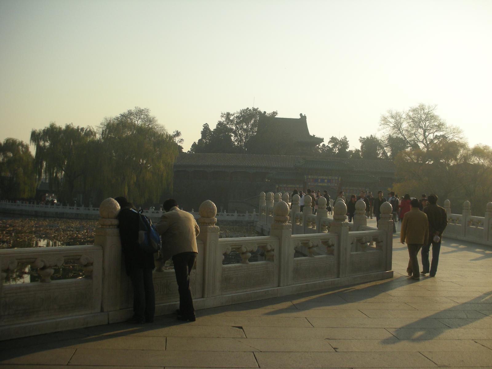 (永安橋。橋の向こうは瓊華島 中央は白塔(チベット仏教の塔)。)