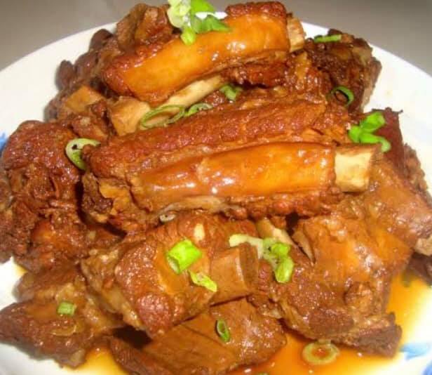 排骨とは豚、牛、そして羊から肉をそぎ落とし、あばら骨や脊椎骨の上の肉を残したものです。紅焼排骨は一般的には豚肉のスペアリブを使い、肉はおいしいですが、脂っこくなく、栄養満点です。