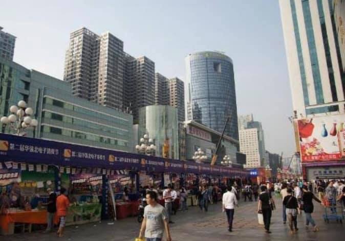 華強北は、深セン中心部の福田区の一角を占めるエリアのことです。もともとは日本の秋葉原を模してつくられましたが、いまやその秋葉原の30倍という世界最大の電子商店街となっています。