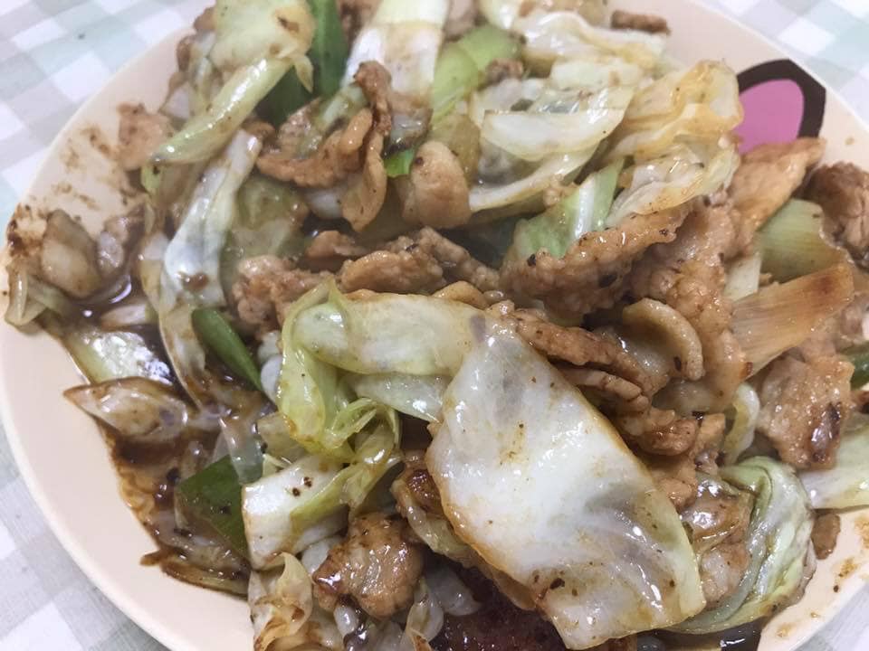 4、キャベツに火が通ったら、調味料をもう一度混ぜて、全体に絡め、皿に盛って出来上がり。