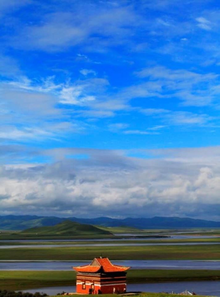 黄河は、白河と合流して清らかな水が美しいS字型の曲線を描きながら、湿地面積100万ヘクタールの若爾蓋湿原に流れていく。展望台からの美しい眺めは黄河の全景が広がり、情景が目に焼き付くことでしょう。