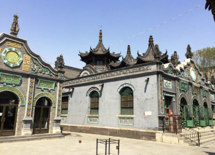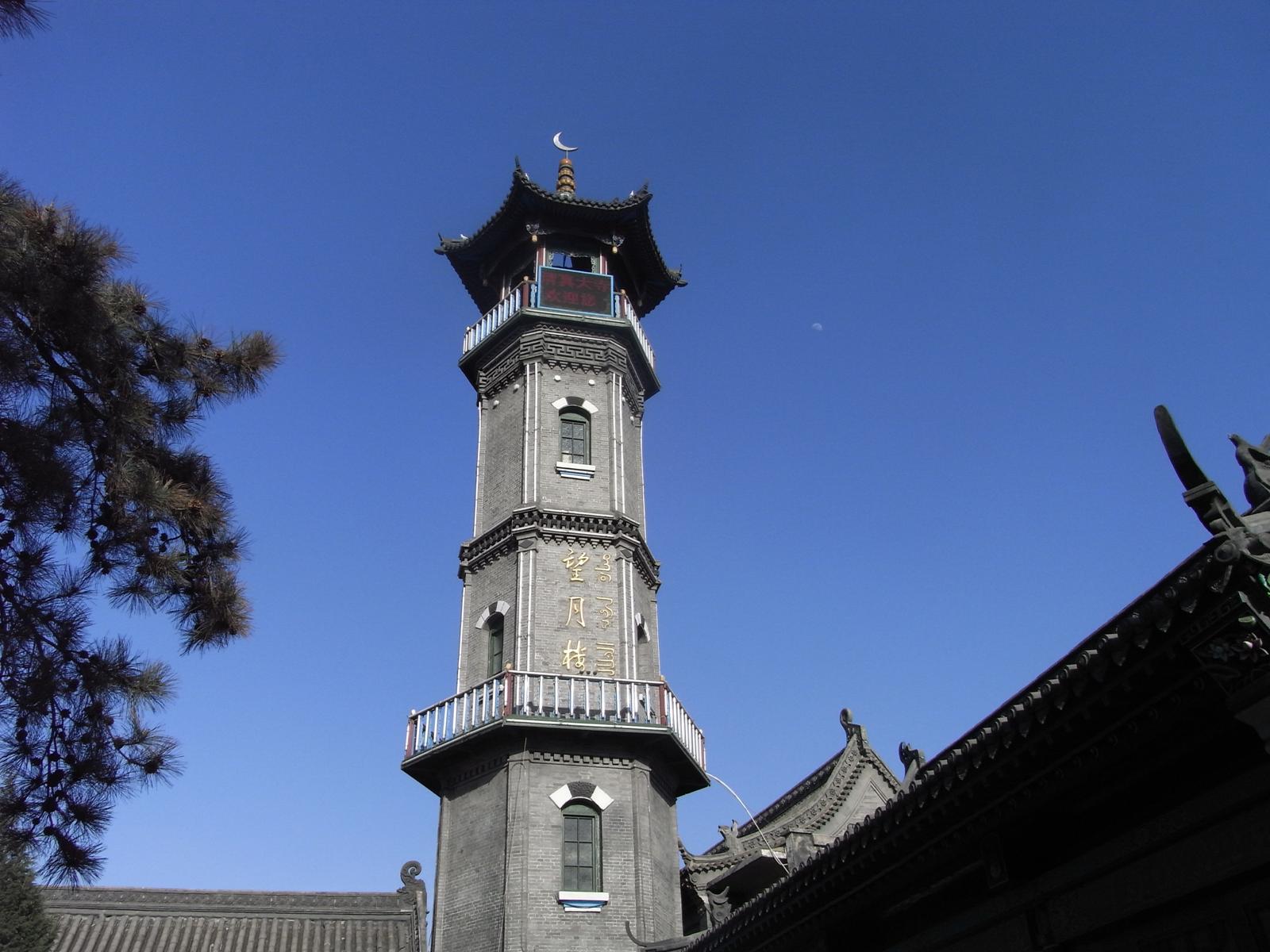 イスラム風情街の中心にはイスラム教の寺院である清真大寺があります。これは清の乾隆帝の時代、イスラム族が大量に新疆からフフホトまで移住して来て、広大なモスクを建てたことがその起源とされています。寺院の正門は聖地エルサレムのある西に向って建てられ、色々なイスラムの模様が装飾されています。寺院の建築は、聖殿、講堂、イスリム浴室などがあります。またイスラム教徒の寄付で、境内に6角4階の望月塔が建築され、貴重なアラビア語のコーラン経30冊収蔵されています。