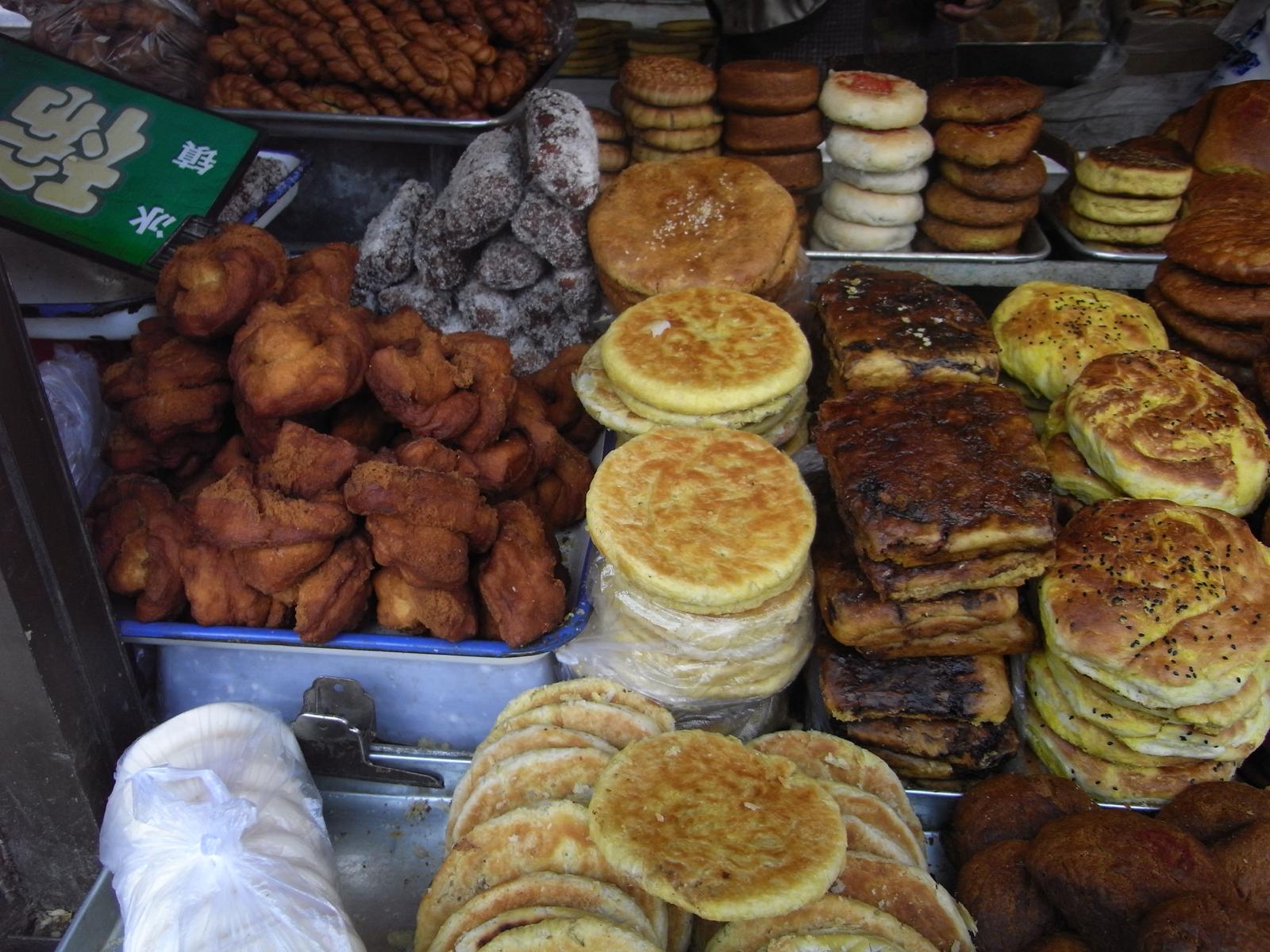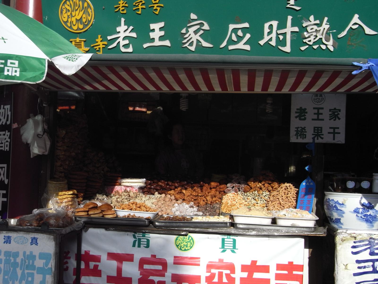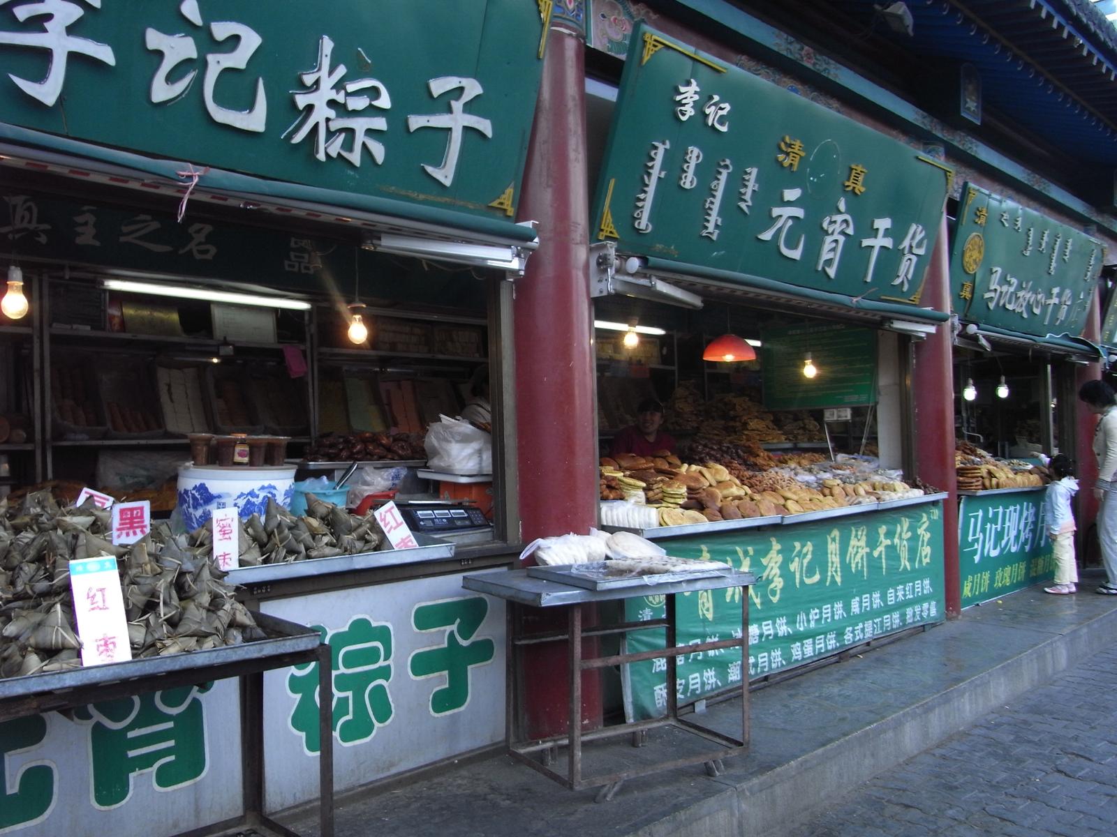 (モンゴルB級グルメ店。粽屋さんが見えます。赤棗入りの粽もありますね。また月餅屋さんもあります。)
