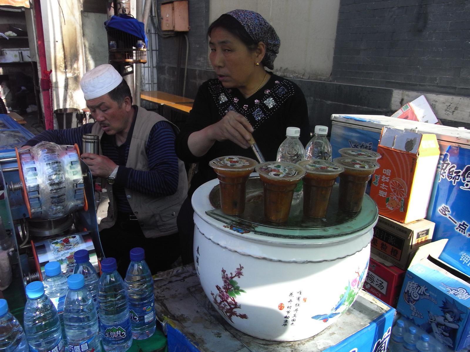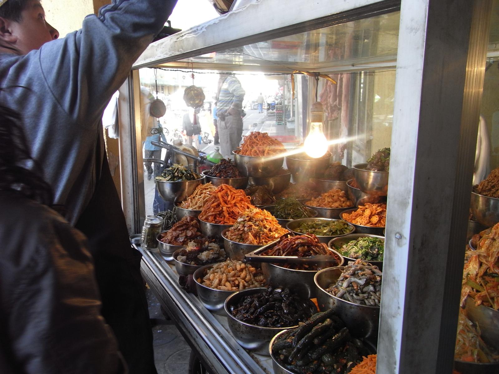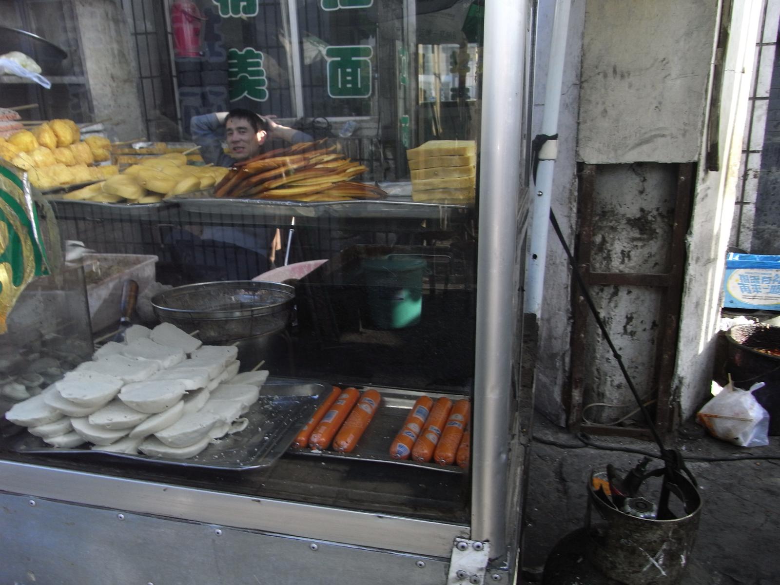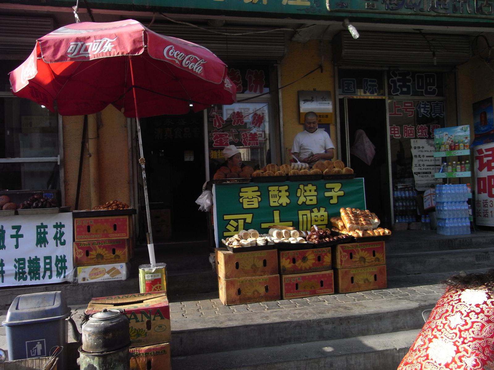 (モンゴルB級グルメ店。粽屋さんが見えます。赤棗入りの粽もありますね。また月餅屋さんもあります。)