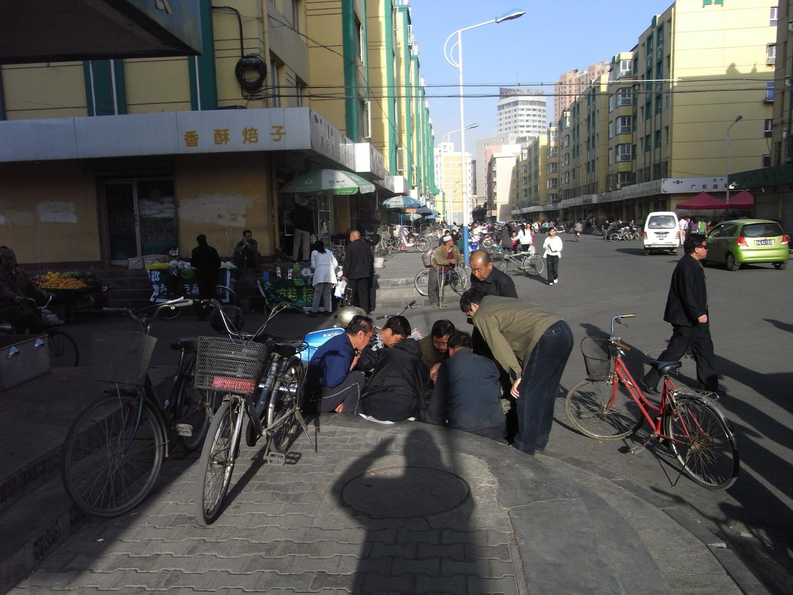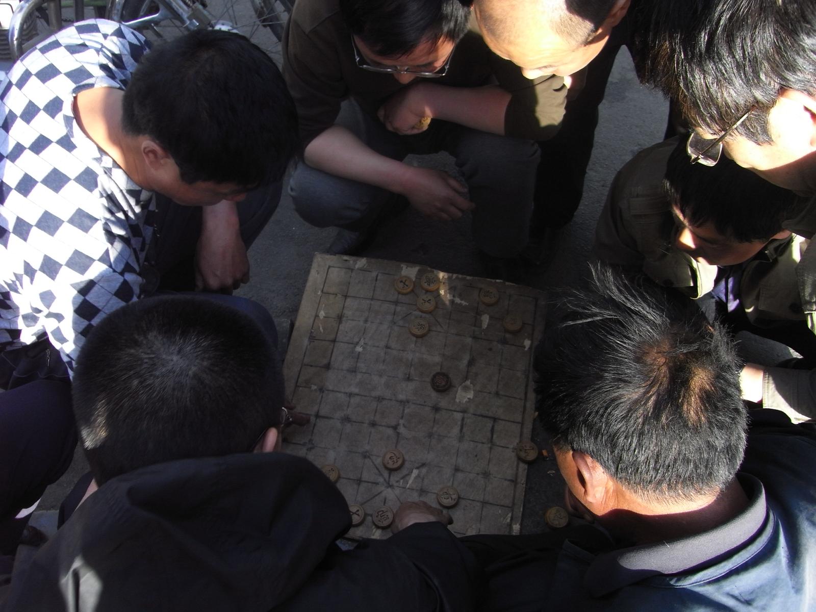 (何やら道路で人だかりが。覗いて見ると中国式囲碁でした。)