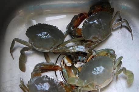 7、ワタリガニを6の上に乗せて8分蒸し器の中に入れて蒸したら出来上がり!