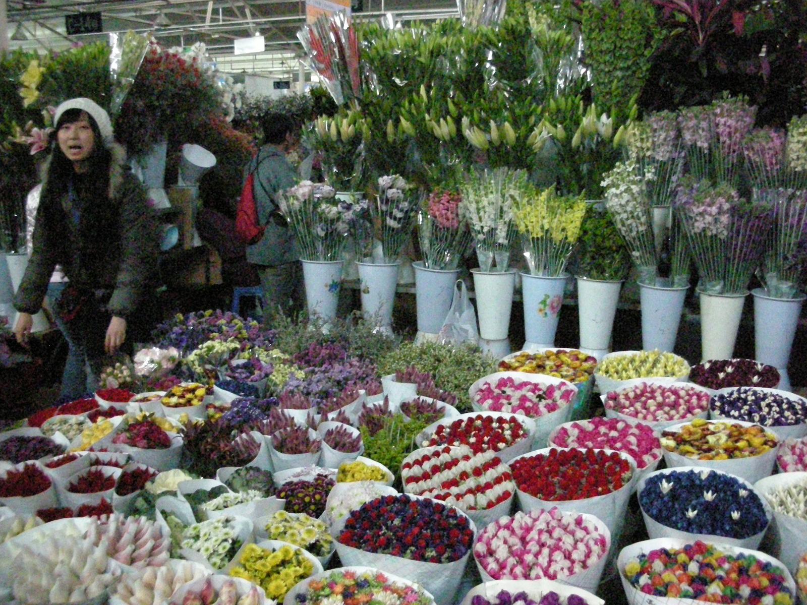 (昆明は一年中花が開き誇るので花城と呼ばれます。花束として美しく加工され、花市場で売られていました。)