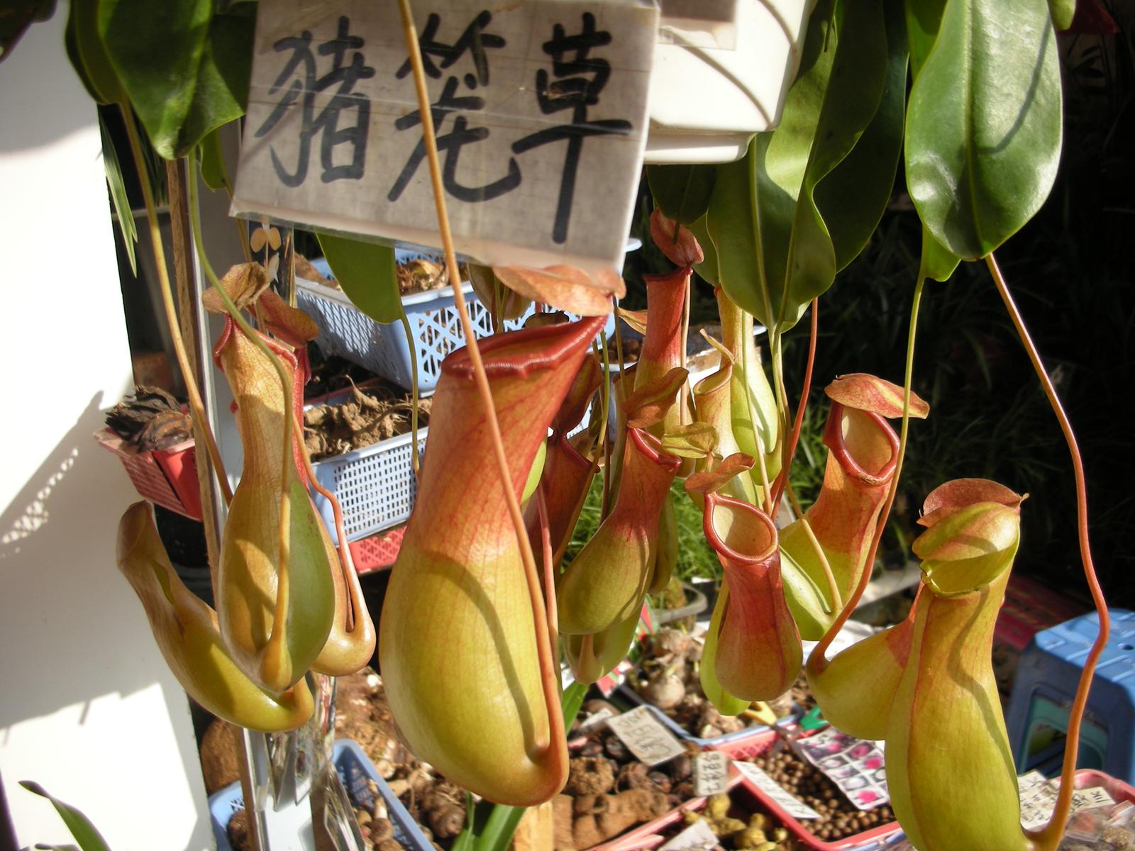 (市場にはハエ食い花まで売っています。中に虫を消化する液体が入ってます。)