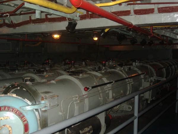 ミンスク号は全長約300メートル、高さは22階建てのビルに相当する巨大空母です。艦内には全長約8メートルの魚雷やミサイル貯蔵庫、航海用品や軍服など旧ソ連海軍にまつわる品々が展示されており、広い戦闘機格納庫ではロシア歌舞団によるパフォーマンスも見られました。甲板には発射台にセットされたミサイル、ミグ戦闘機やヘリが見学できるほか、儀典兵のデモンストレーションも行われ、人気を呼んでいました。