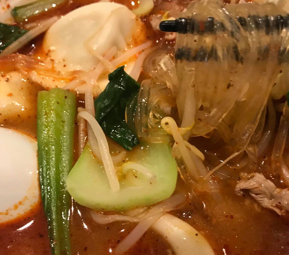 早速メニューを確認。トッピングがいろいろ選べるみたいで楽しみ!!2辛以上はホントに辛いとのことで勧めませんとのことでしたが、辛いのが大好きなので、とりあえず3辛にして水餃子、もやし、チンゲンサイ、羊肉をトッピングすることに。