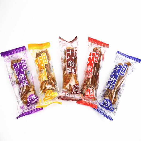 十八街麻花は、まず小麦粉から作って発酵させた生地の中に胡麻、クルミの実、メロンの種、青梅、キンモクセイおよび香精水などを混ぜ合わせて作った餡を入れます。次にそれを弱火の油鍋の中に入れて揚げ、砕いた氷砂糖を加えます。最後に特有の調味料をふりかけて出来上がりです。今では色々な派生品が次々に出てきており、どれも独自の特徴を持つ麻花となっています。食感は硬いですが、サクサクしており、甘党の人にとってはたまらない食べ物です。