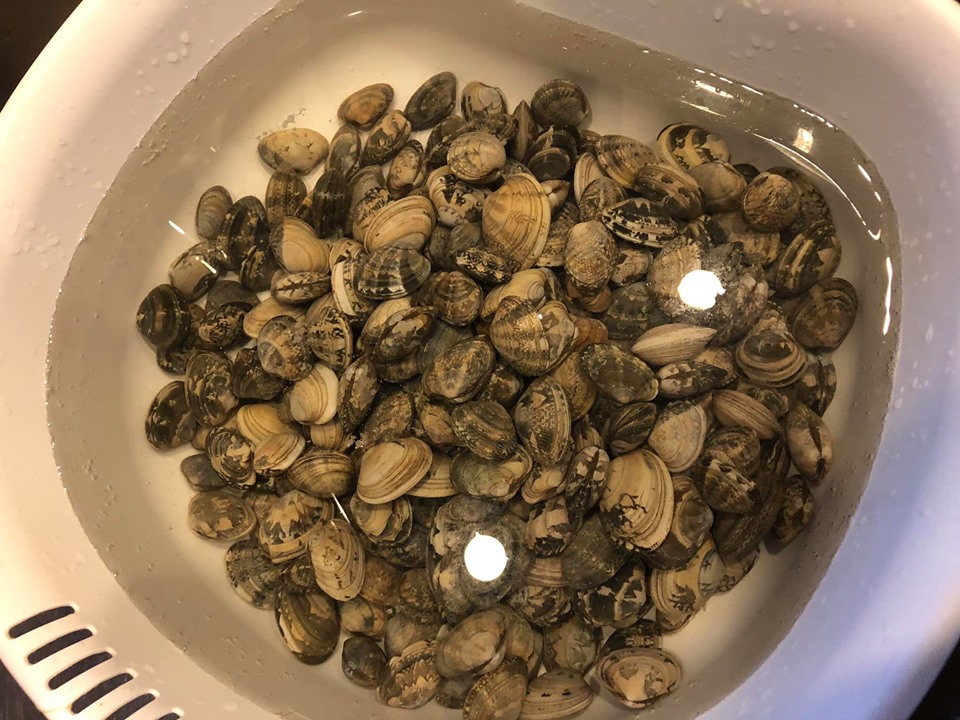 1、海水くらいの塩水に30分〜1時間ひたして砂抜きし、両手でこすり合わせるようにしてよく洗う。