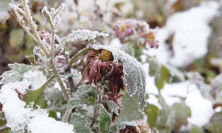 菊の花は傷んでしまったが、まだその枝は凛として霜を受けている。