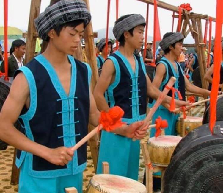 また水族の祭祀として毎年10月から11月になると水族の暦に従い、先祖祭祀の端節が行われます。真夜中に銅鼓に供物を家の祖先棚の前に置き、女性が叩いて、祖先の霊を慰めます。