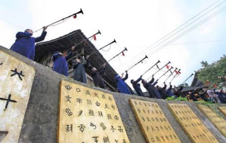 水族は水語を話し、漢字を逆転したような表意文字の水書(ル・スイ)と呼ばれる絵文字、象形文字を合わせた独特な文字を使っています。水書には信仰、暦法、哲学、文学、芸術などが含まれ、水族研究の貴重な資料とされています。