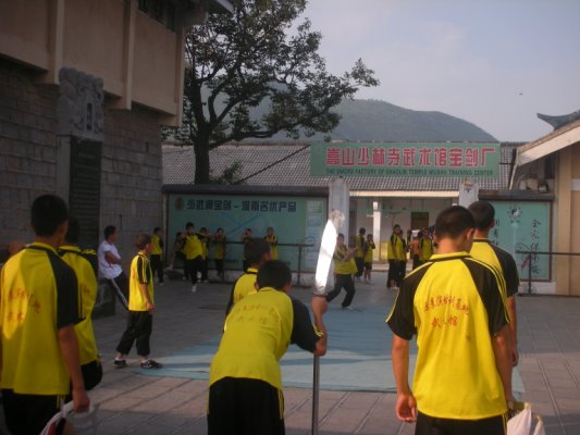 近くの少林寺武術学校!剣を使った練習してました。表情は真剣そのもの。