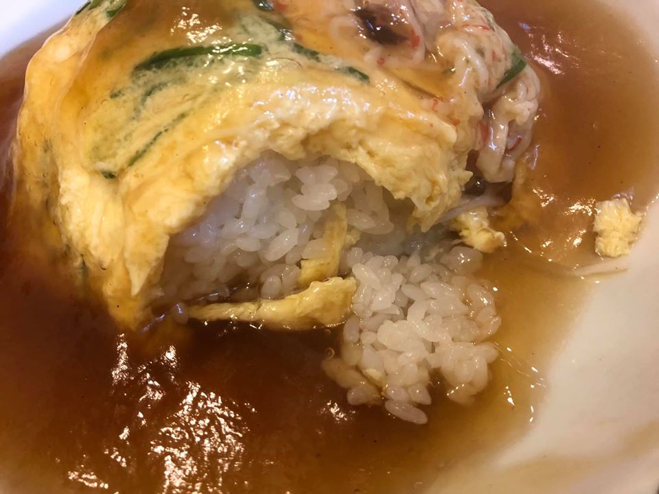 今日は久しぶりにホカホカのご飯をフワフワの卵焼きで包み、トロトロアツアツのあんかけで包んだ料理「天津飯」を注文!シンプルですが、美味しいですね!あんかけの味もあまり濃くないので、卵の旨味を堪能できました。天津飯は一口食べるとまたすぐにもう一口食べたくなるような、不思議な魅力を持った一品ですね。