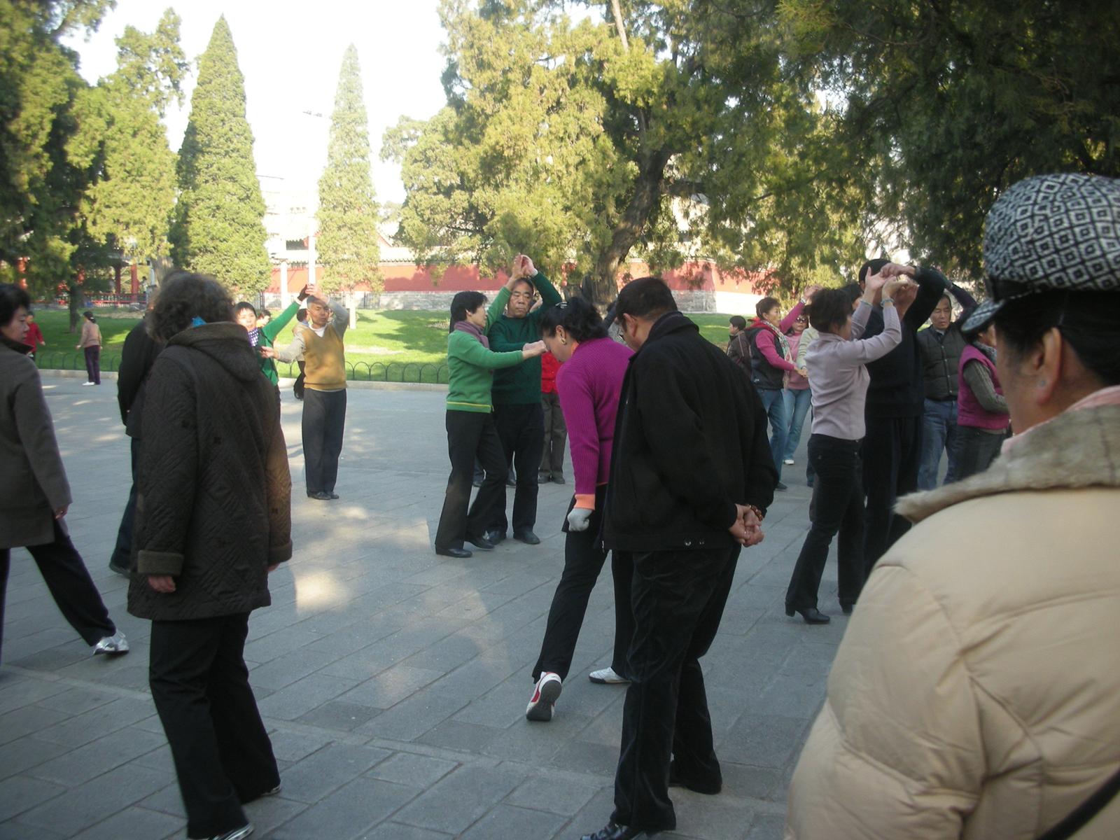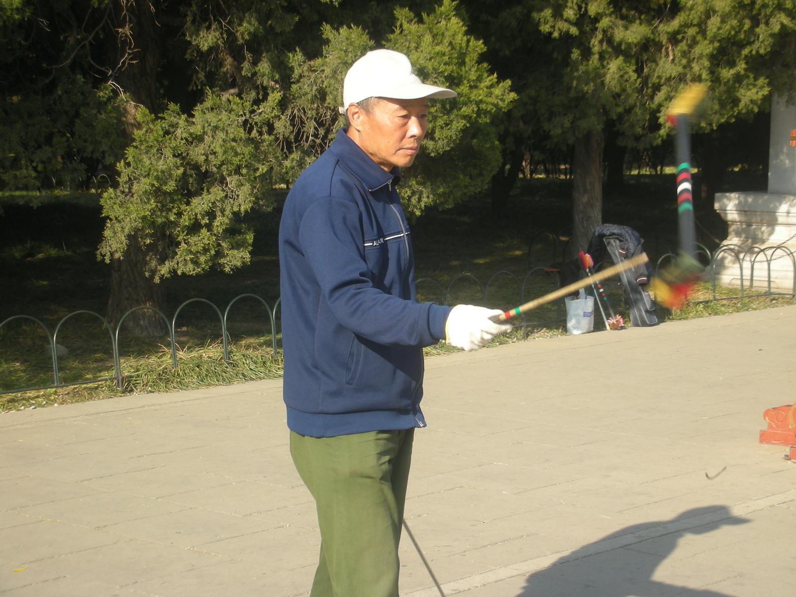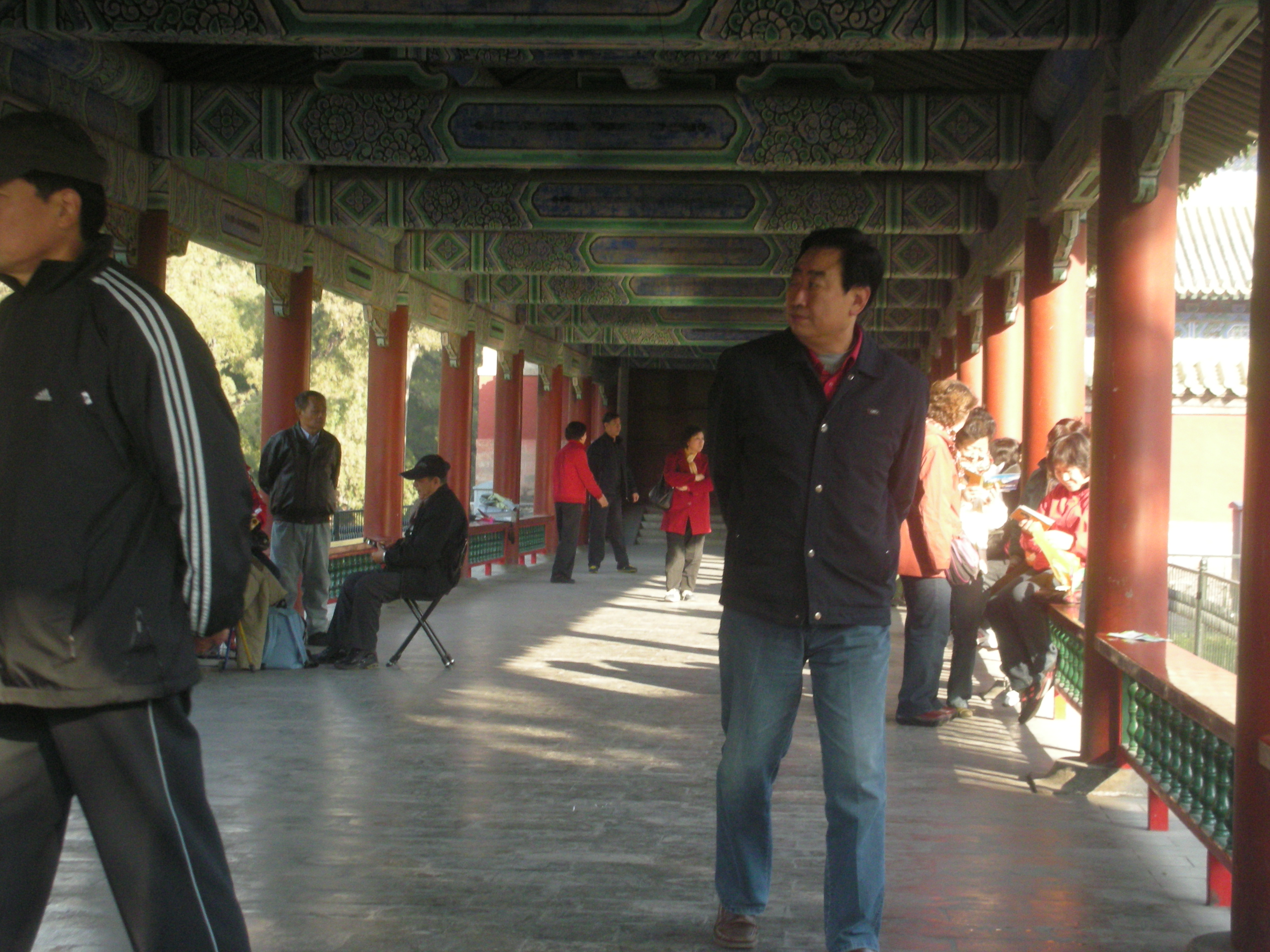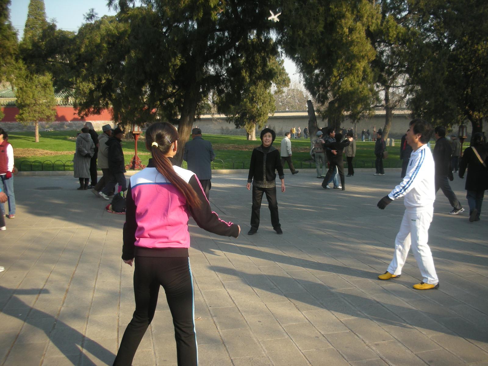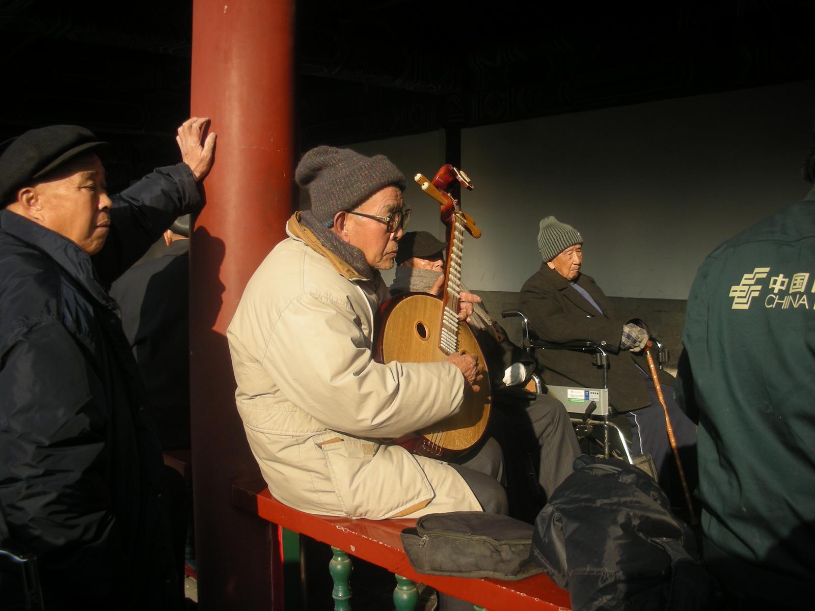 世界遺産に登録されている当公園ですが、地元の人々にとっては市民の憩いの場所となっています。東西配殿、七十二長廊などにはお年寄りが大勢集まり、太極拳したり、中国将棋したり、音楽を奏でたり、?子と呼ばれる昔ながらの蹴羽根を楽しむ人もいます。