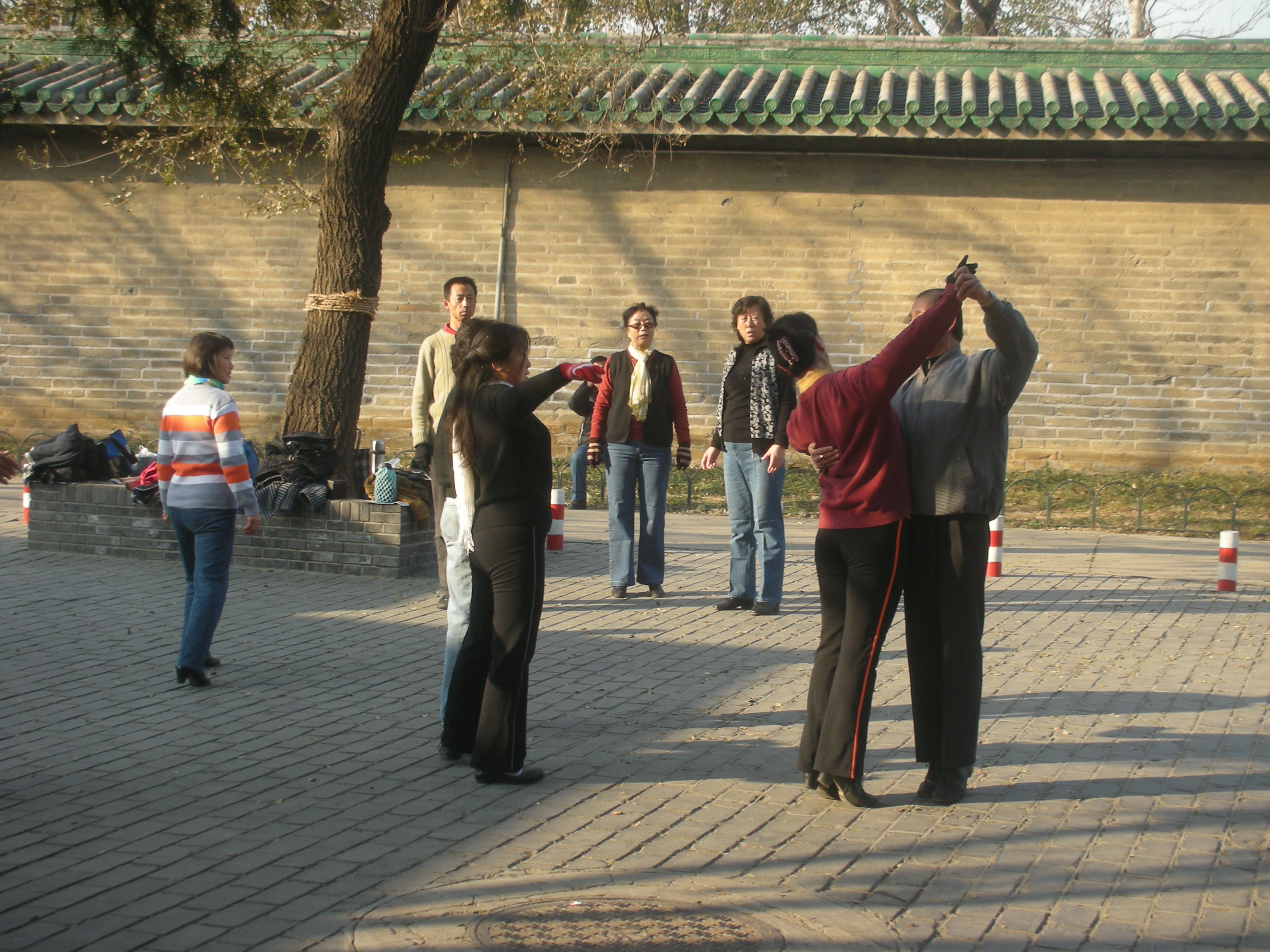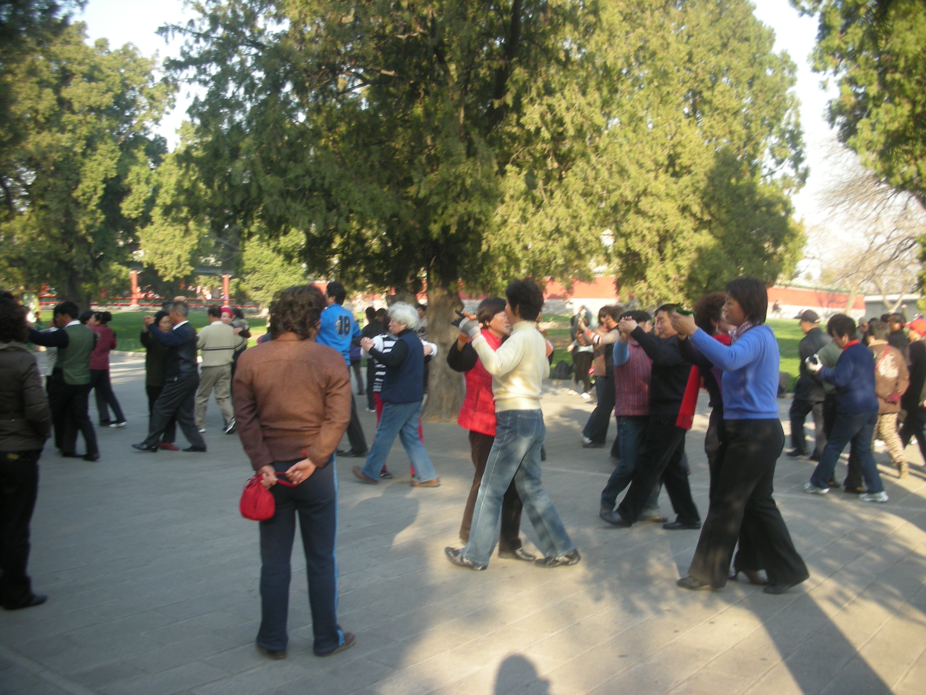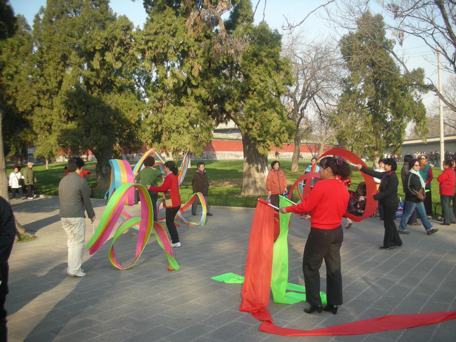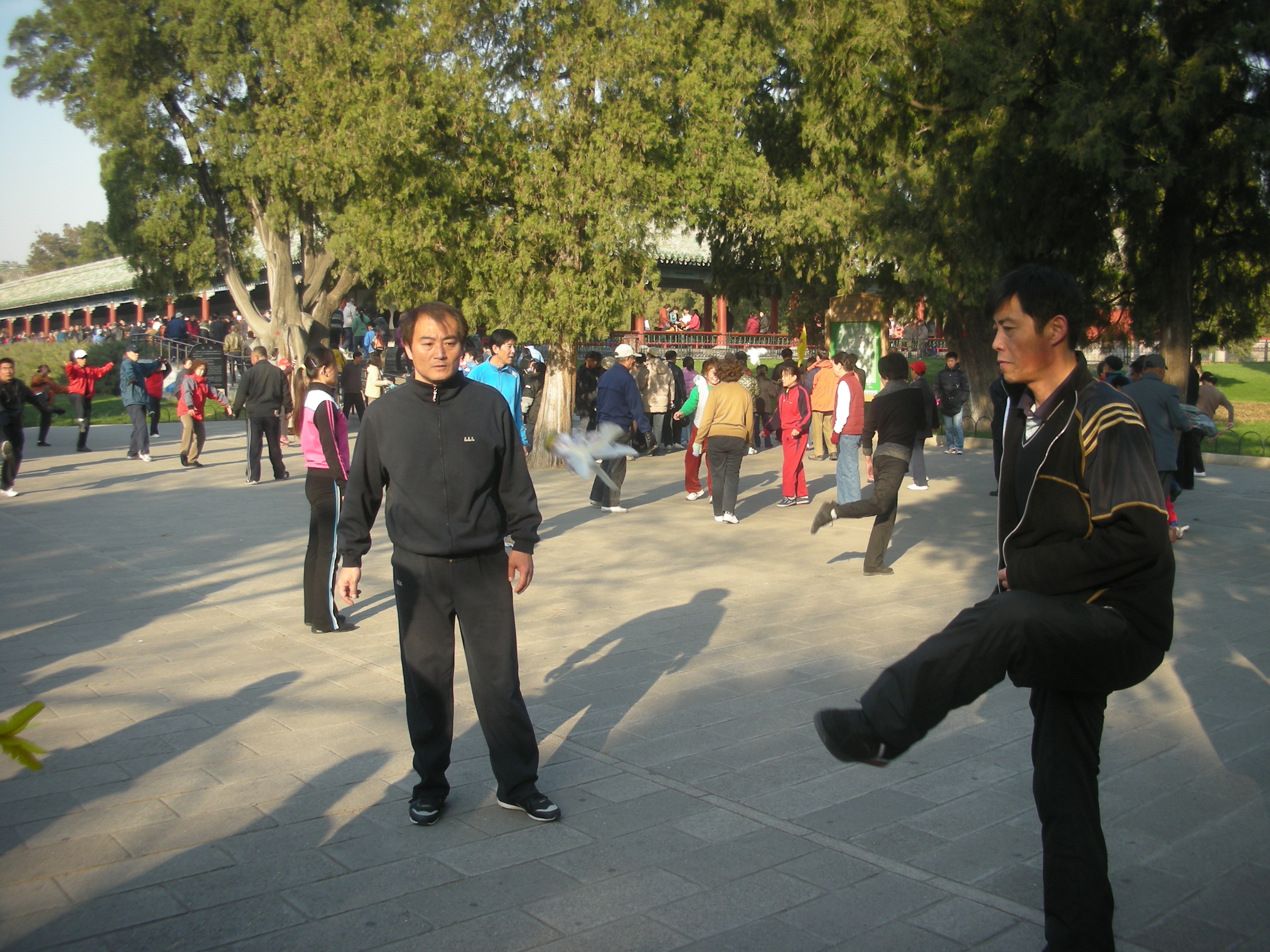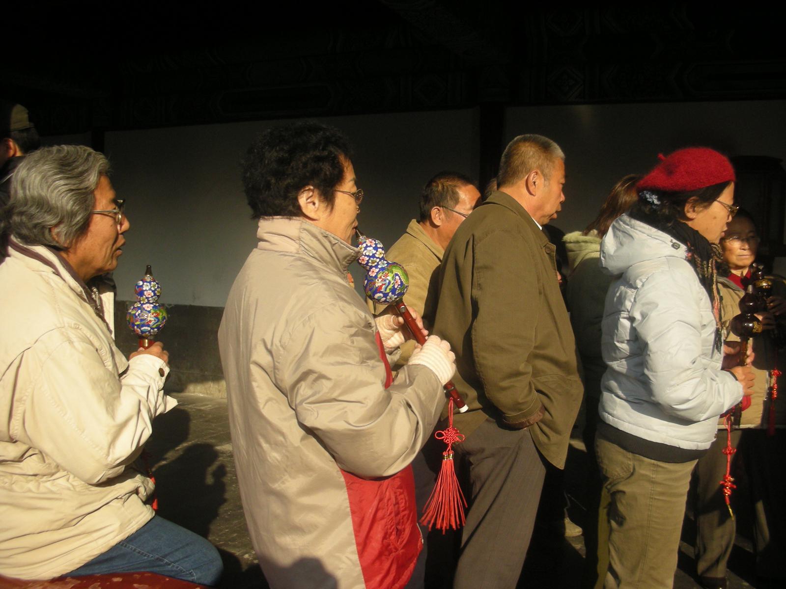世界遺産に登録されている当公園ですが、地元の人々にとっては市民の憩いの場所となっています。東西配殿、七十二長廊などにはお年寄りが大勢集まり、太極拳したり、中国将棋したり、音楽を奏でたり、?子と呼ばれる昔ながらの蹴羽根を楽しむ人もいます。