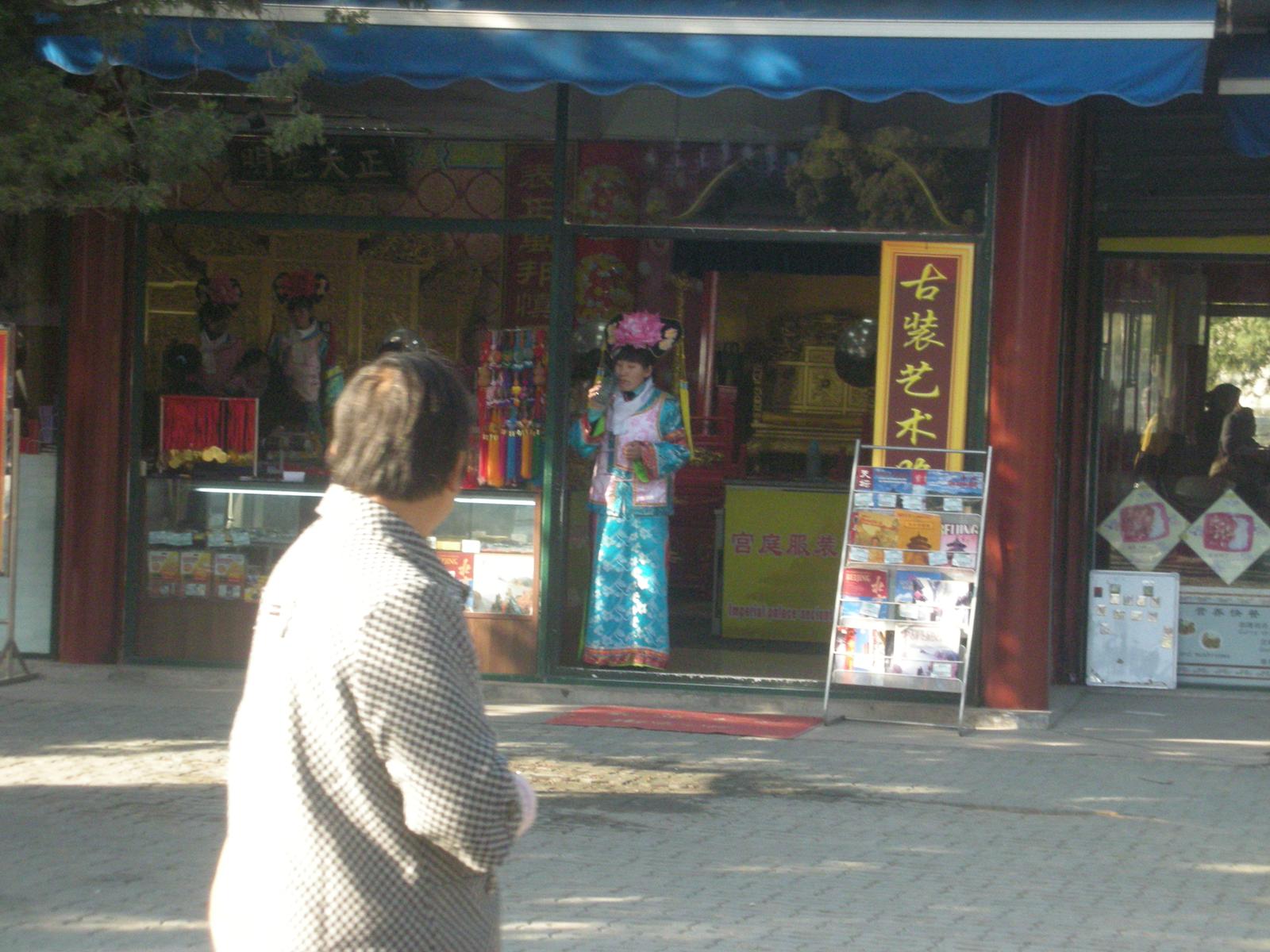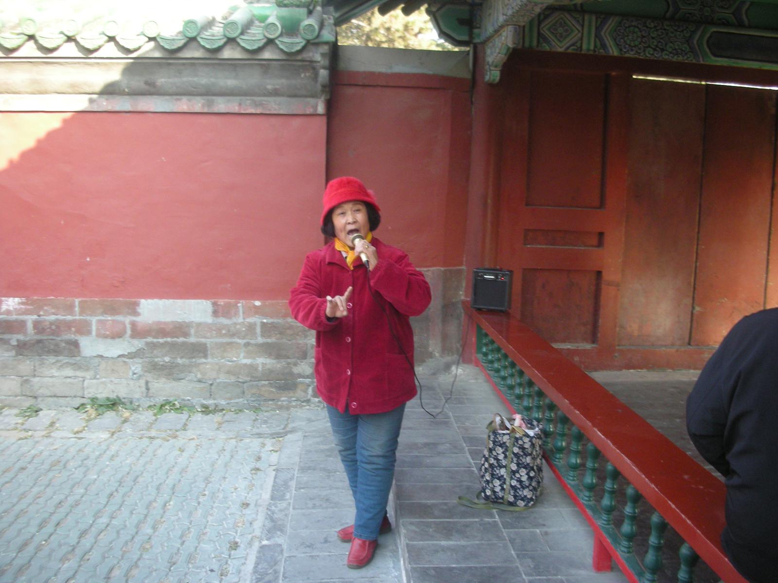 (祈年殿前で歌を歌うおばさん。)