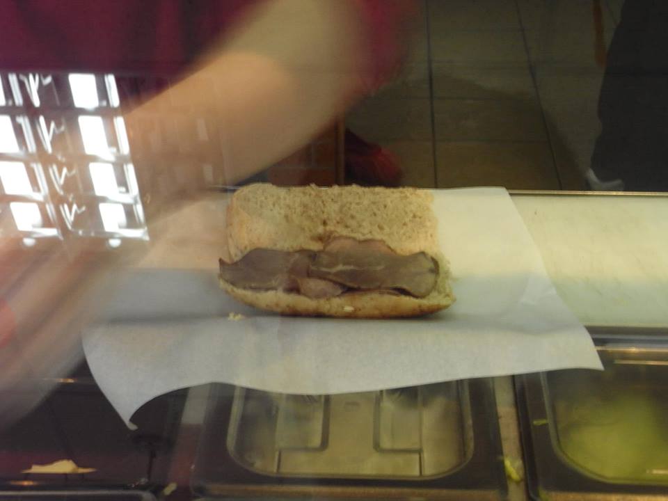 ( 中国式は最初に希望の肉系の具を選び、店員さんがパンにはさんでいきます。)