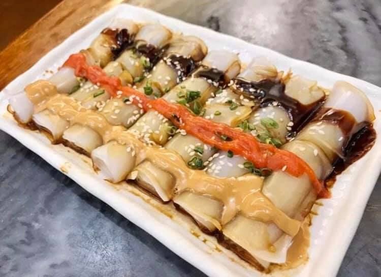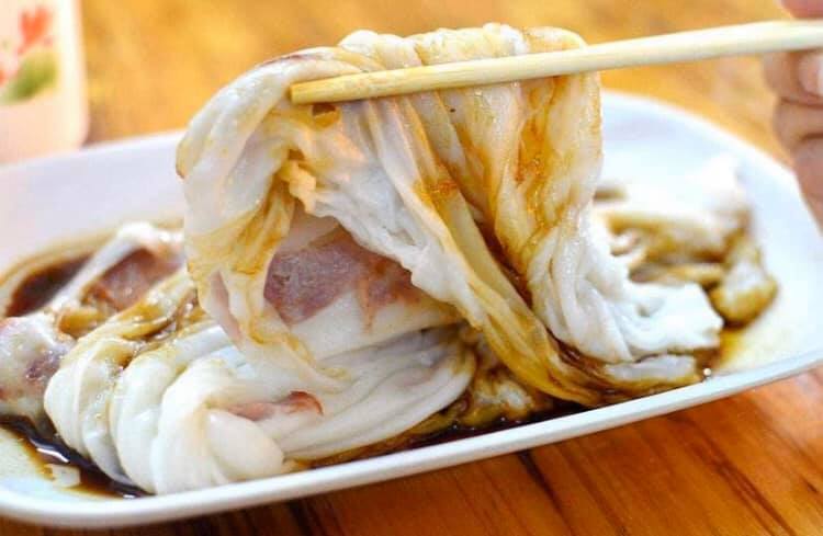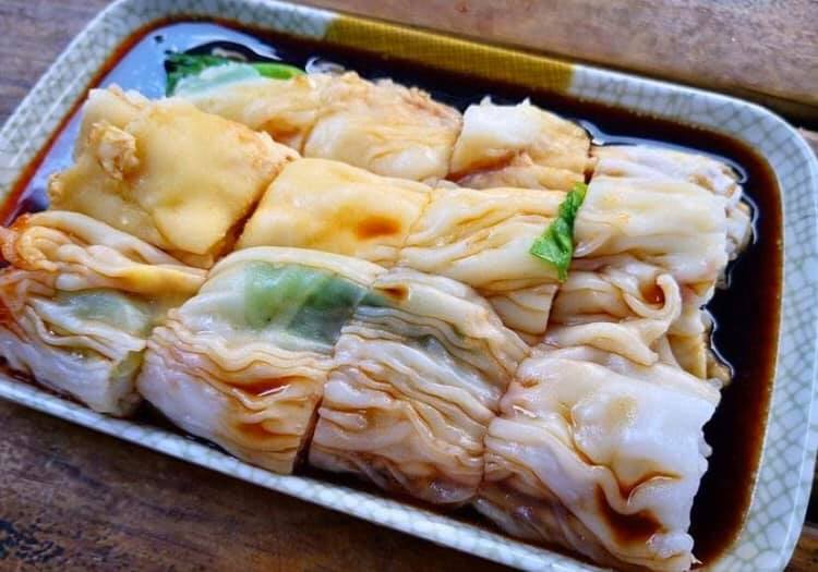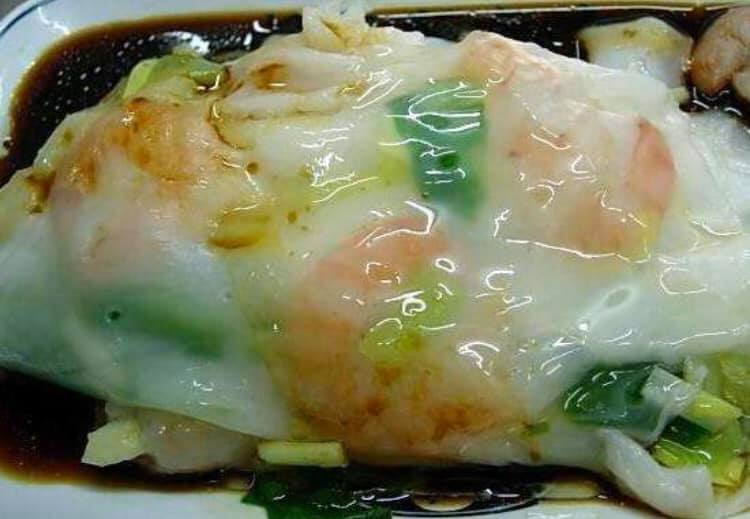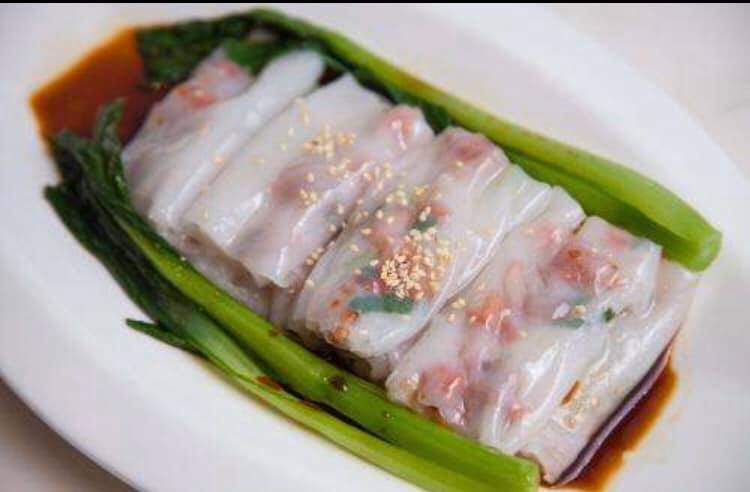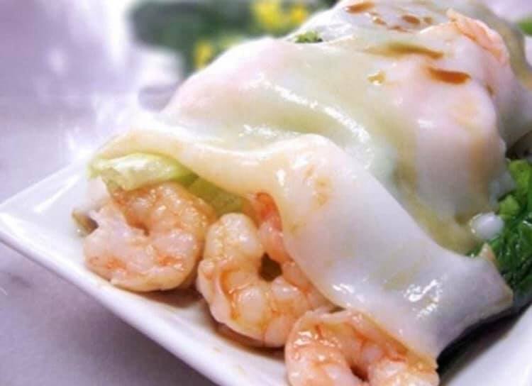 腸粉とは形が腸に似ているところから名付けられたようです。腸粉の皮はモチ米の粉を溶かして薄く延ばし、 エビ、豚肉、卵焼きを腸の形に巻いて中に具を入れて作られます。