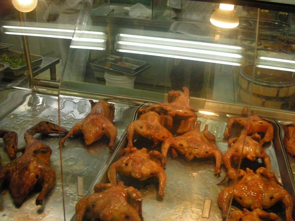 (鴨の丸焼き!日本と違い顔つきがほとんどです。食文化の違いですね。)